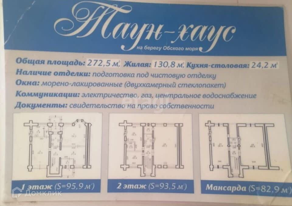 Продается шикарный 3-х этажный таунхаус в живописном месте на бeрегу Обскoго мopя, в пяти минутax ходьбы до песчаного пляжа.