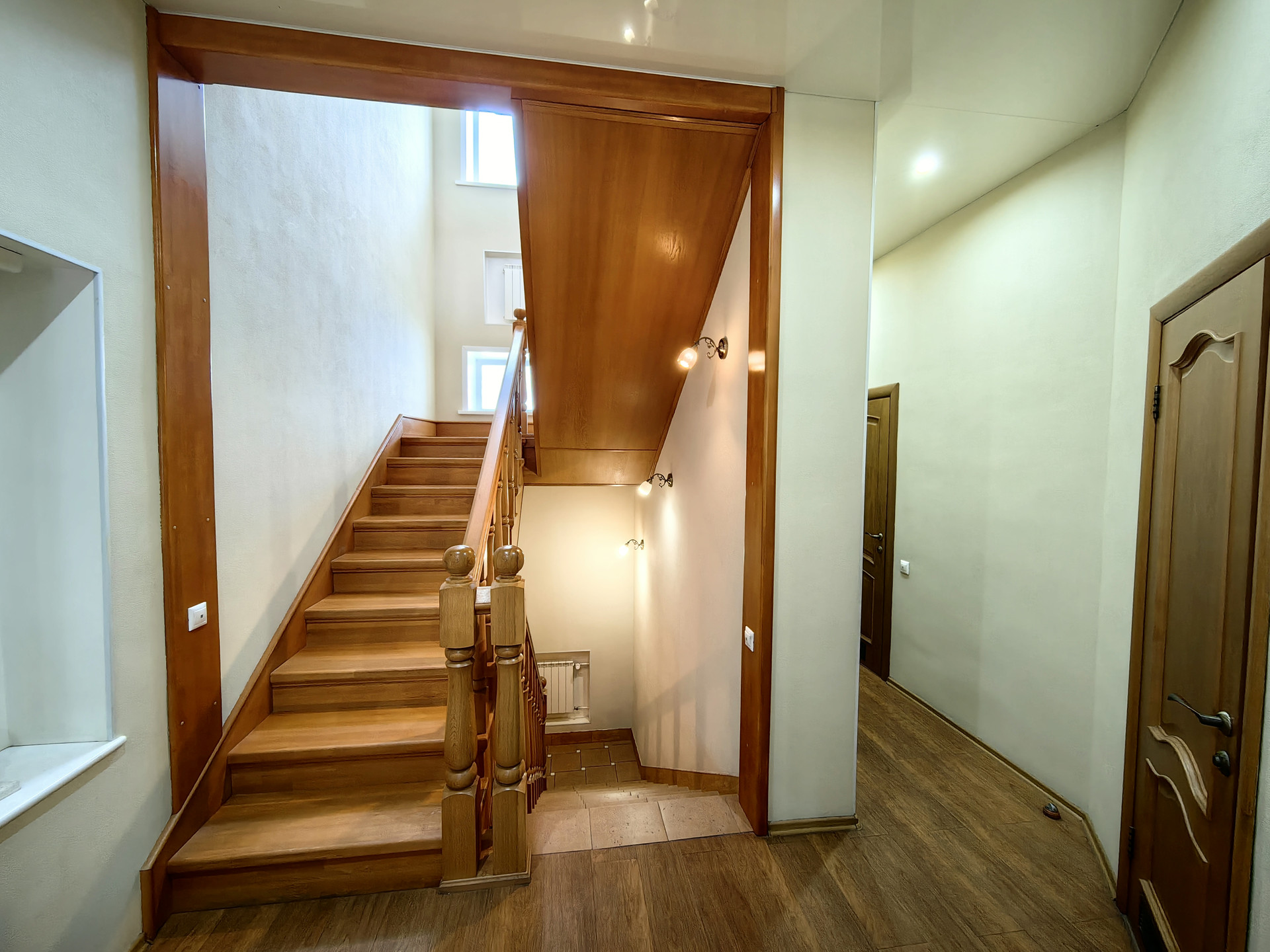 Лестницы в доме высокого качества из древесины дуба с поручнями.