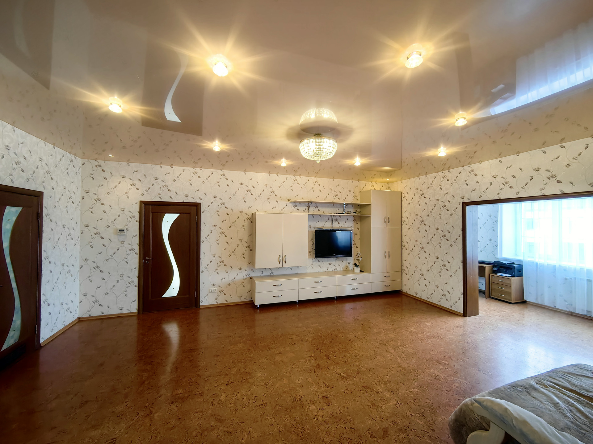 На третьем этаже просторная комната.