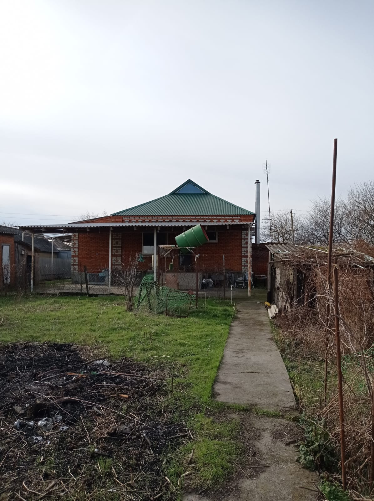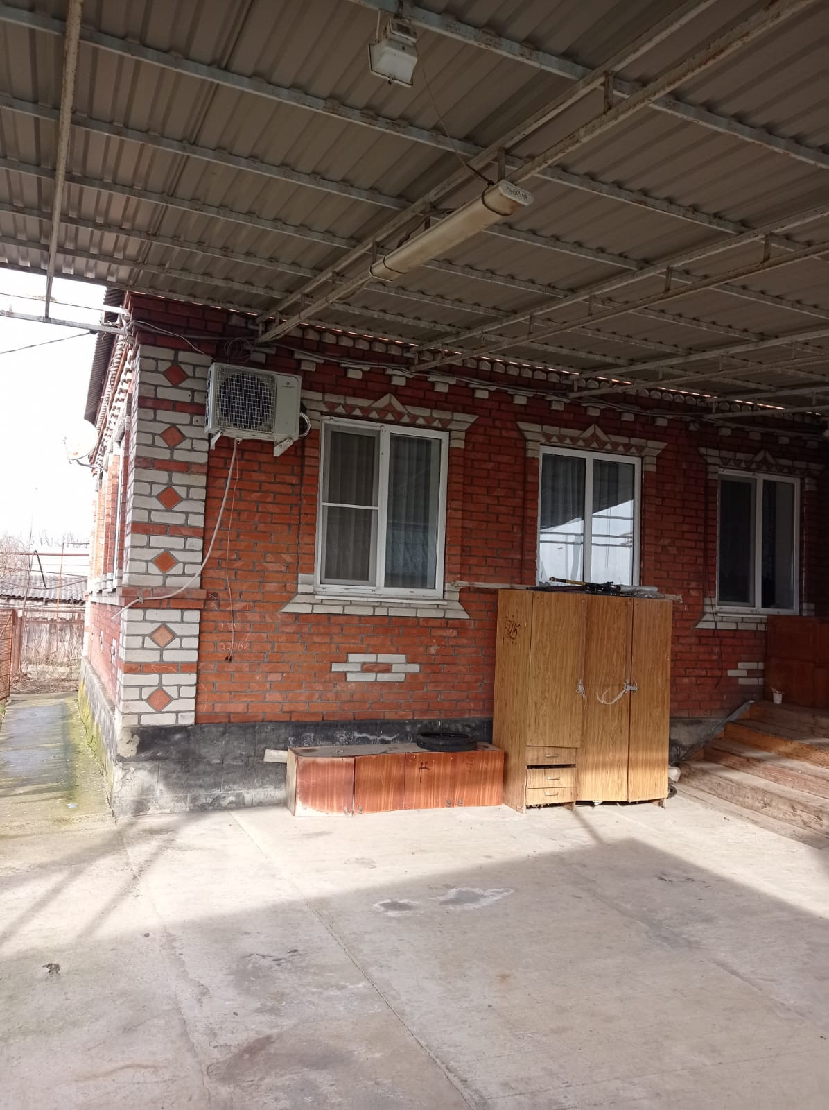 Кирпичный дом, две спальни, кухня, зал, теплые полы, навес, гараж, хоз.постройки.