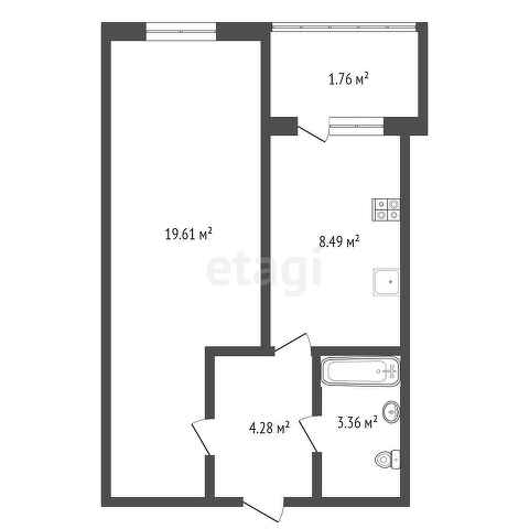 Общая площадь квартиры с учетом лоджии 37.50 кв.м. (холл 4.28 кв.м., кухня 8.49 кв.м., жилая комната 19.61 кв.м., с/у 3.36 кв.м., лоджия 1.76 кв.м.).