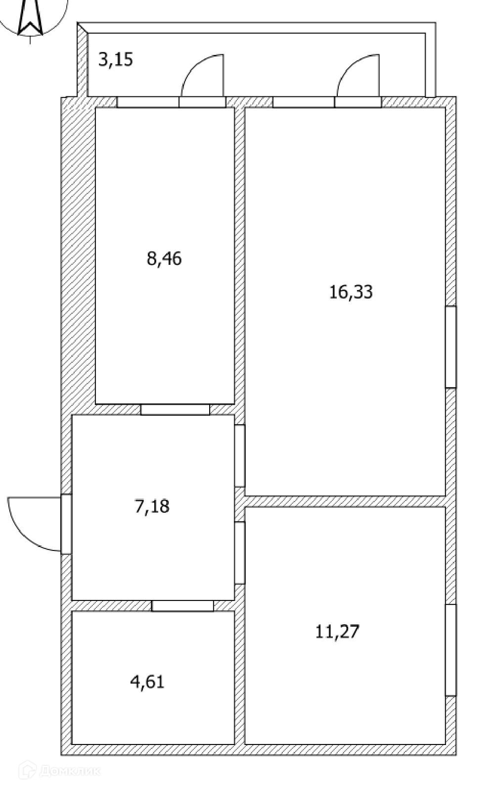 Жилая площадь 27.6 м2