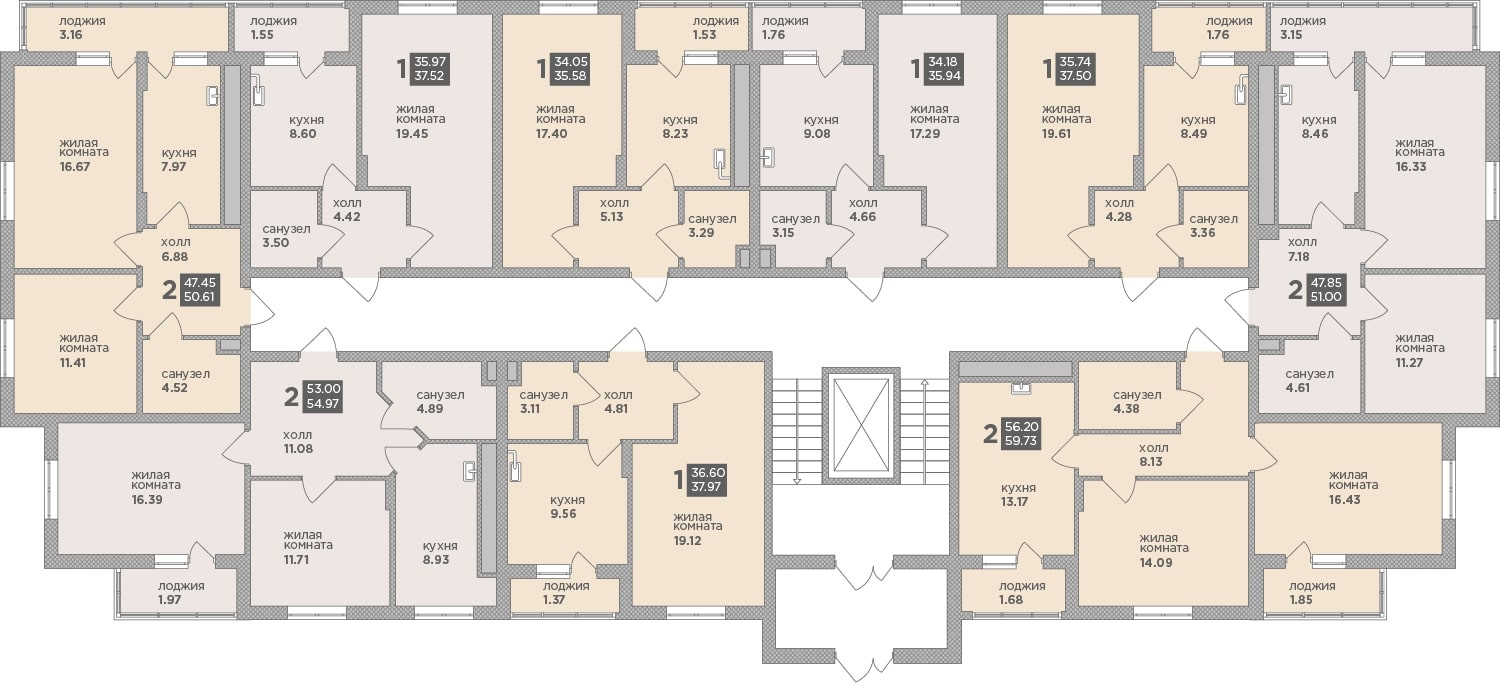 Общая площадь 59.73 м2