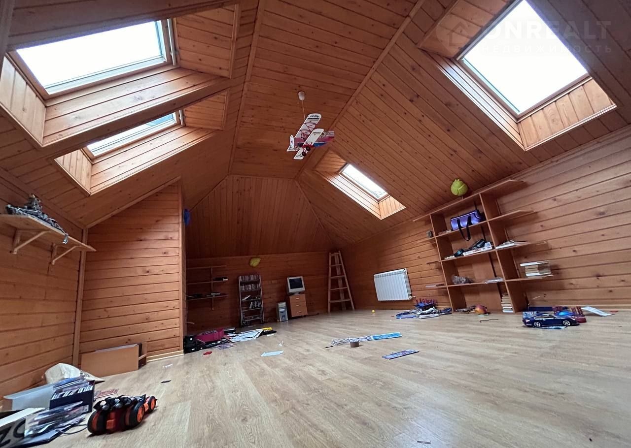 Утепленное обшитое вагонкой отапливаемое пространство с мансардными окнами площадью 109 кв.м.
