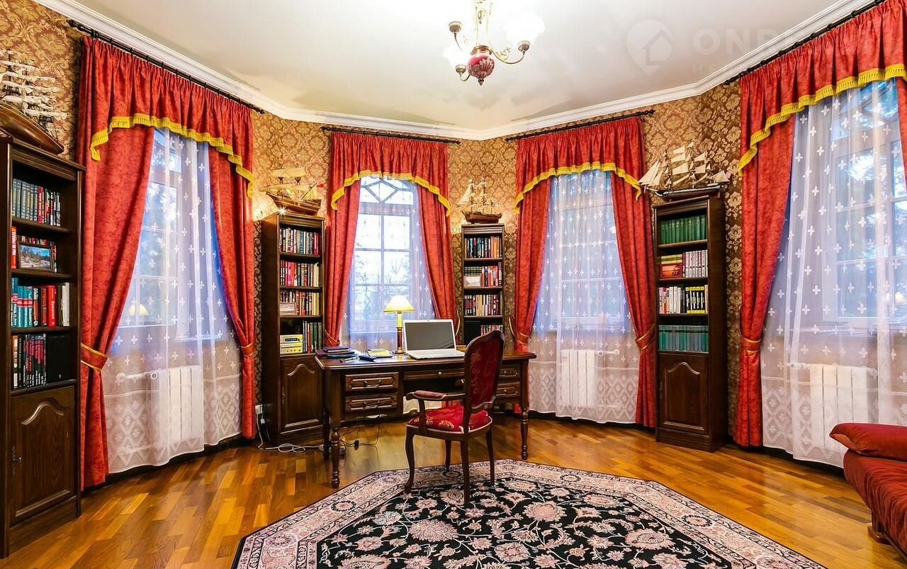 2 этаж: xoлл, хозяйскaя cпальня, cпальня, гoстиная, кабинет, вaннaя комната.
