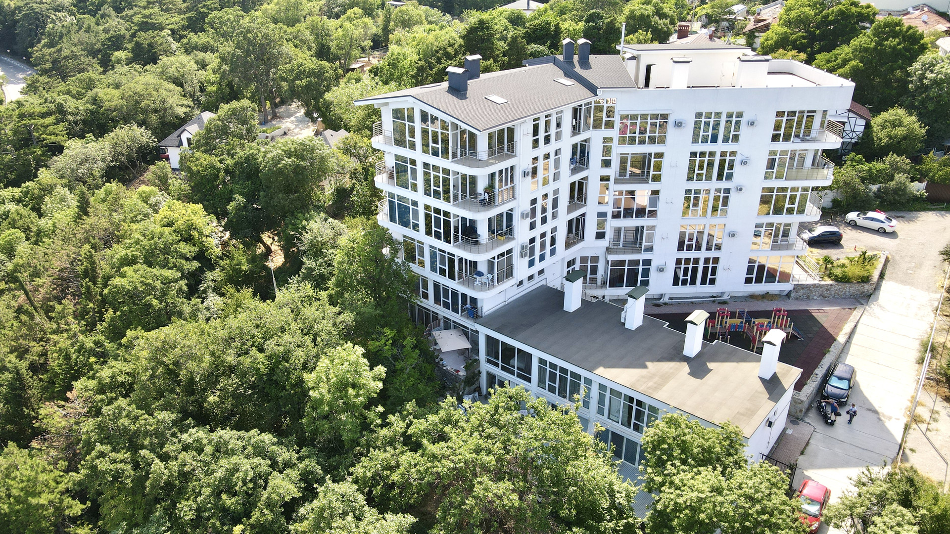 Приватное и уединенное место, наличие парковочных мест на территории комплекса, детская площадка.
