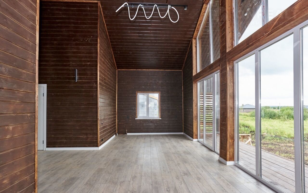 Огромный зал с панорамными окнами, кухня-гостиная с камином.