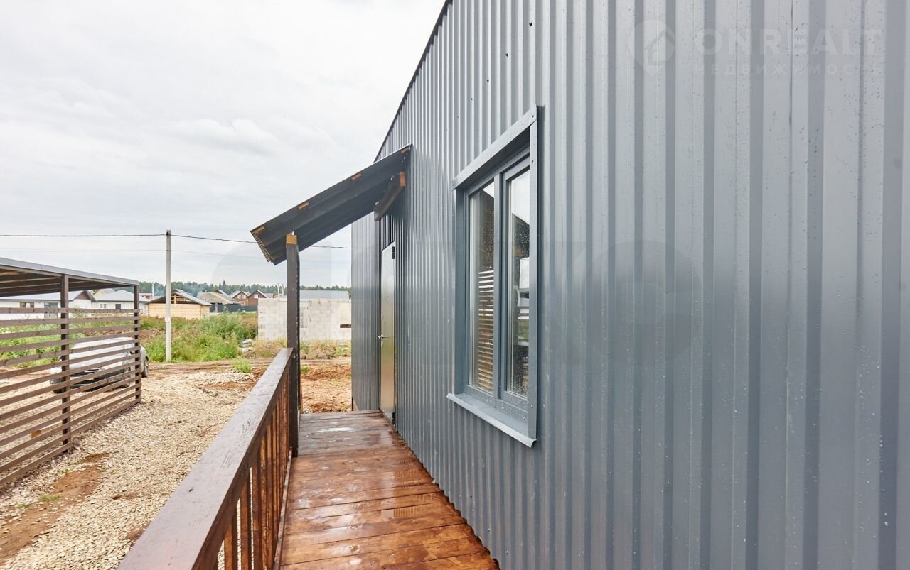 Техническая часть: утепление 200 мм, строганная доска камерной сушки, фундамент - ж/б сваи, двухкамерные стеклопакеты с ламинацией, входная дверь с терморазрывом, наружный фасад - профлист.