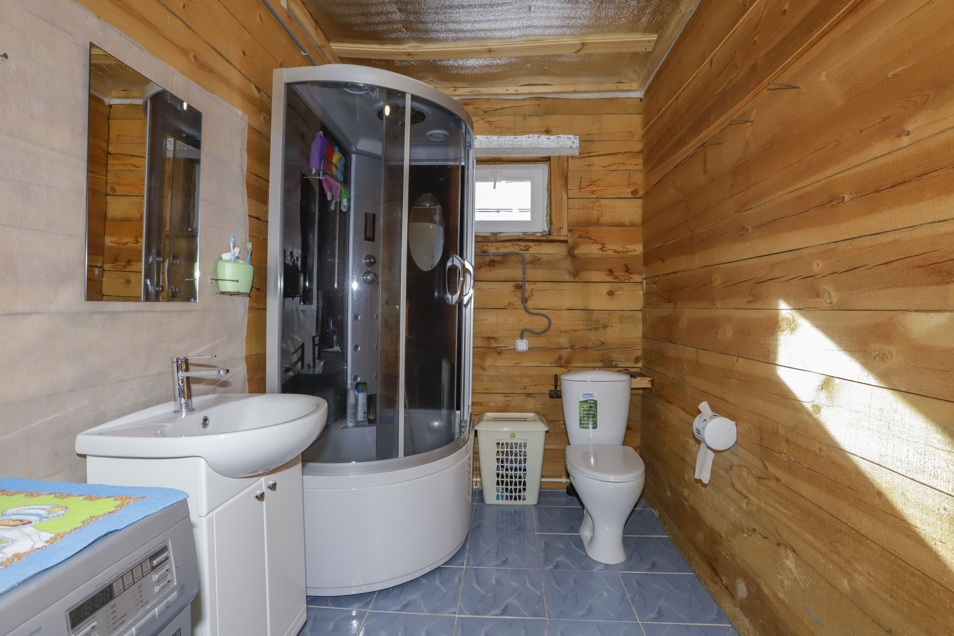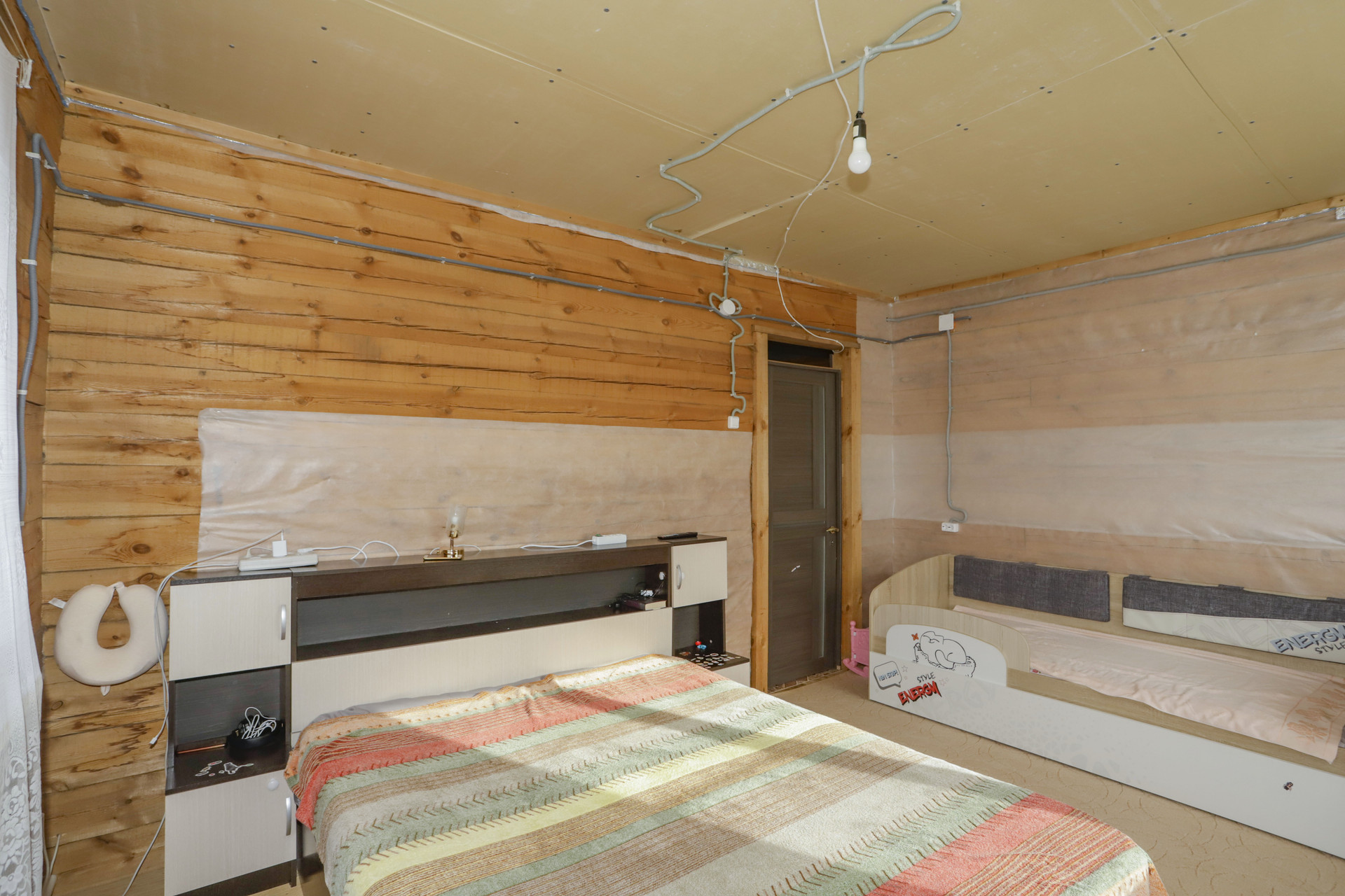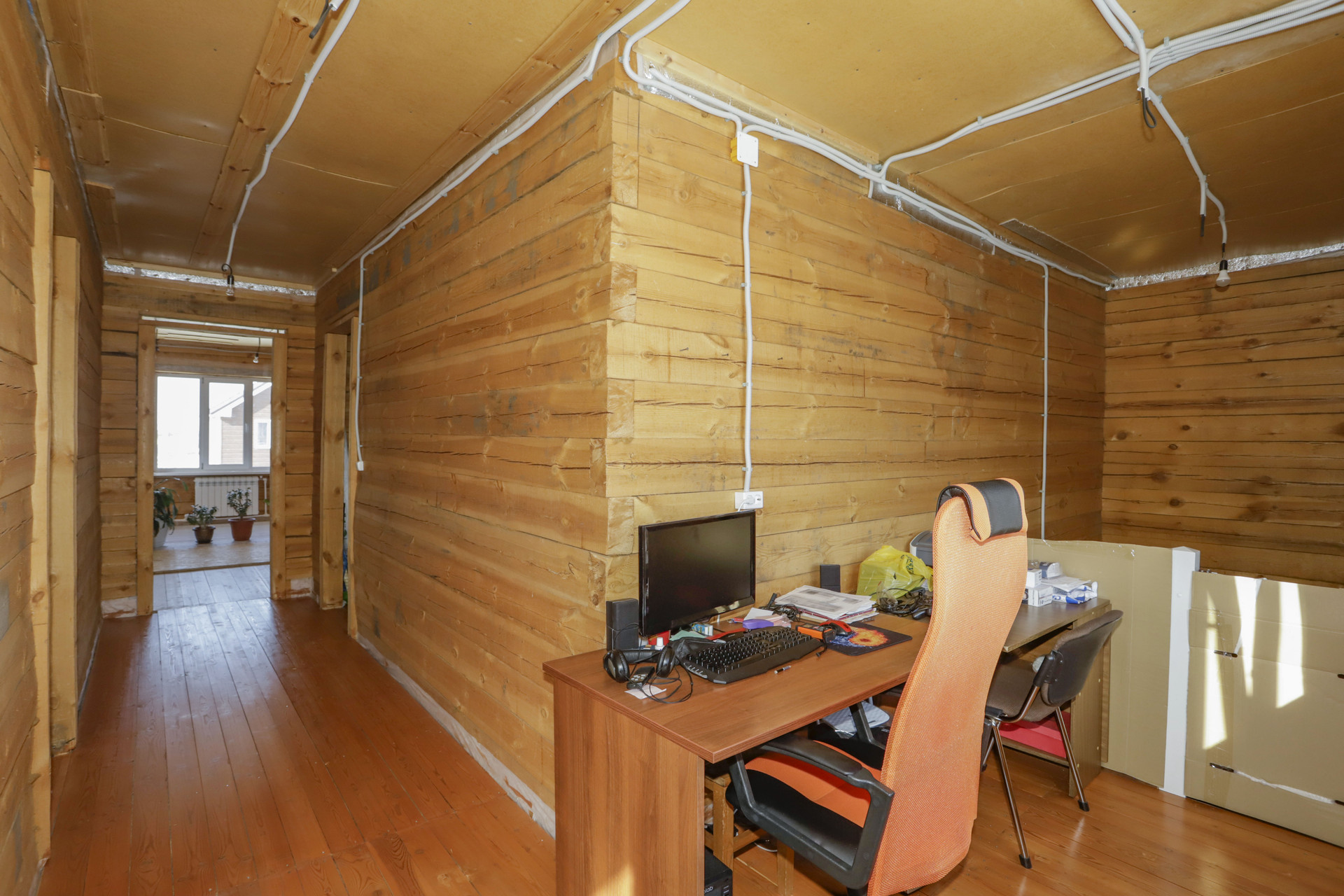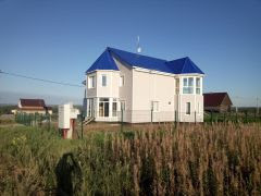 Коттедж строился для себя, индивидуальной планировки, 5 комнат (2 -к на первом этаже, 3-к на втором), большая кухня с гостиной, 2 с/у (полы с подогревом), кабинет и отдельная гардеробная комната на 2-м этаже, огромная мансарда и балкон на 2-м этаже, по дому проведено электричество и отопление. Отопление водяное, стоит электро котел на 15кВт, и твердотопливный котел.