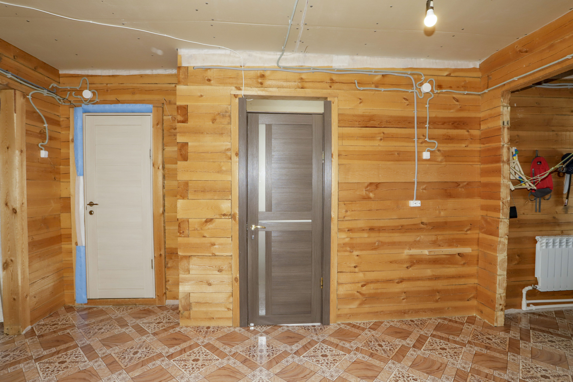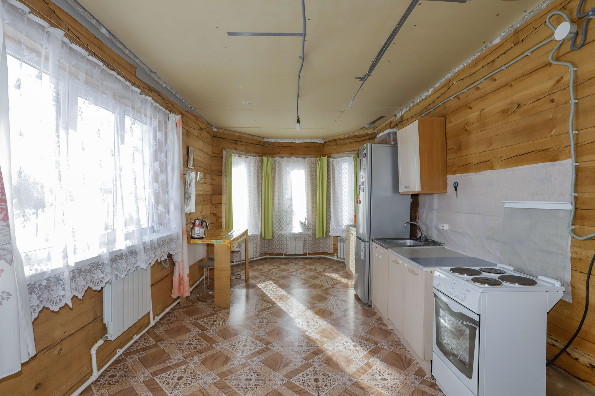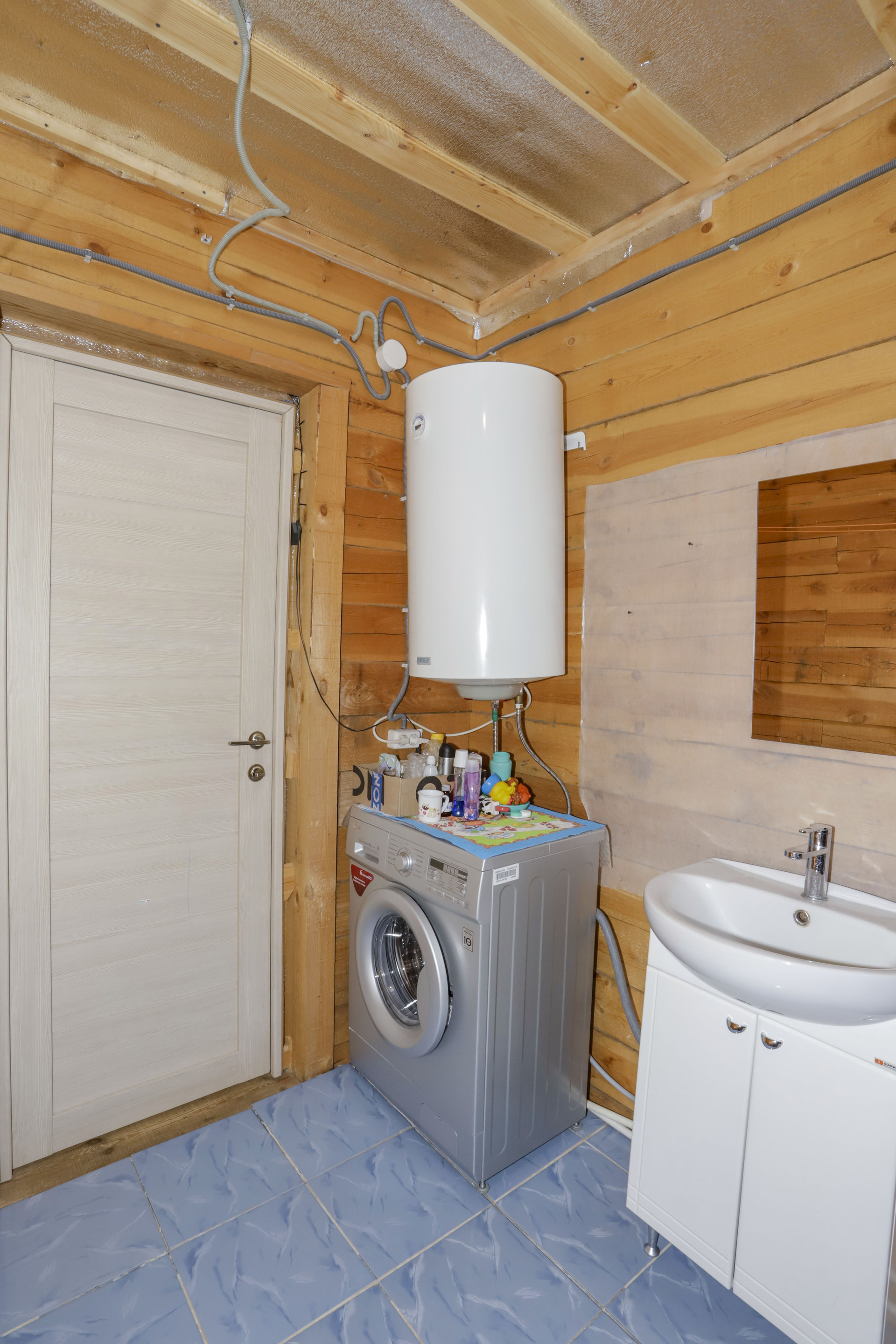 Коттедж строился для себя, индивидуальной планировки, 5 комнат (2 -к на первом этаже, 3-к на втором), большая кухня с гостиной, 2 с/у (полы с подогревом), кабинет и отдельная гардеробная комната на 2-м этаже, огромная мансарда и балкон на 2-м этаже, по дому проведено электричество и отопление. Отопление водяное, стоит электро котел на 15кВт, и твердотопливный котел.