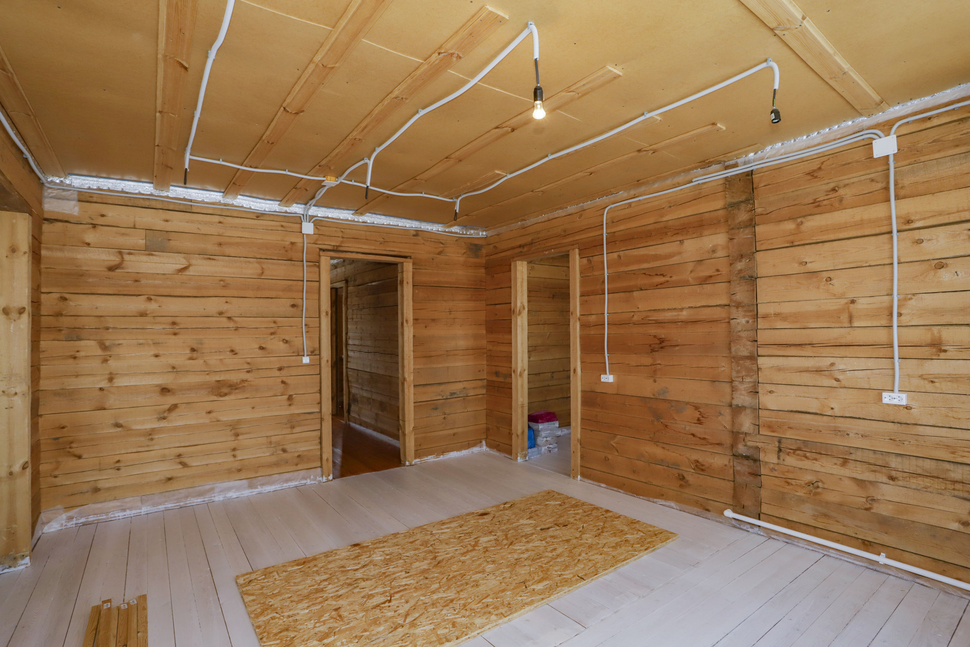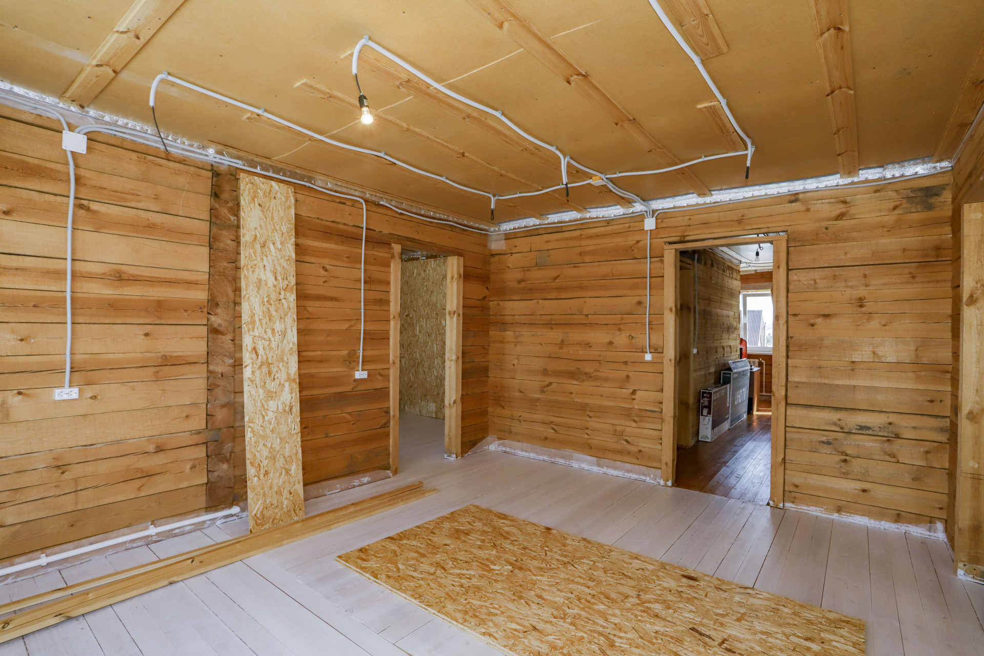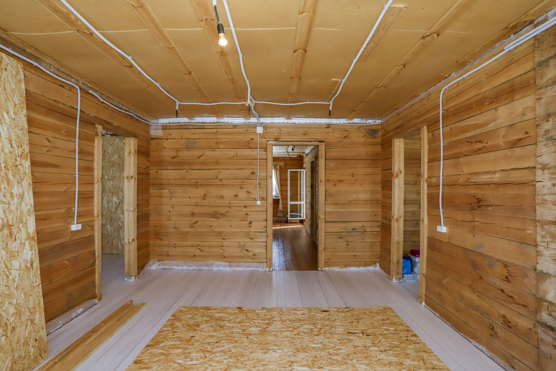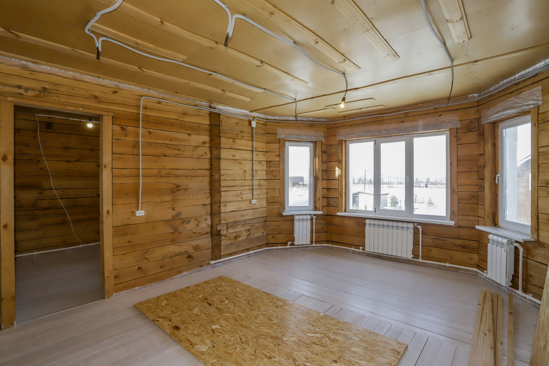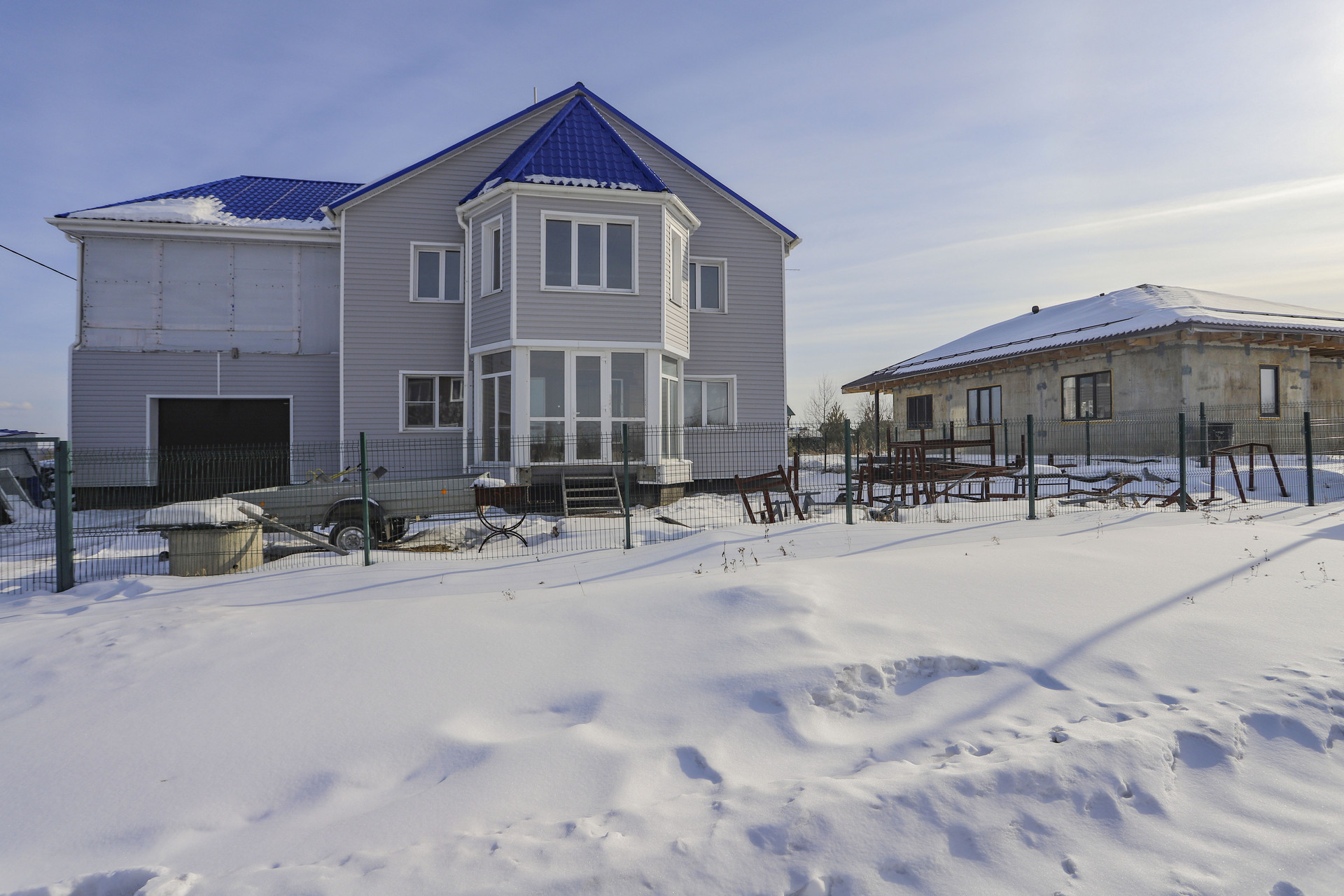 Коттедж из бруса 2015 года постройки утеплен снаружи 10 см базальтовая плита, обшит виниловым сайдингом, каркас под сайдингом металлический, есть все внутренние перегородки, 1 этаж 100 кв.м., 2 этаж 100 кв.м., гараж 42 кв.м., мансарда над гаражем 42 кв.м. Между перекрытиями 230 мм шумоизоляции.