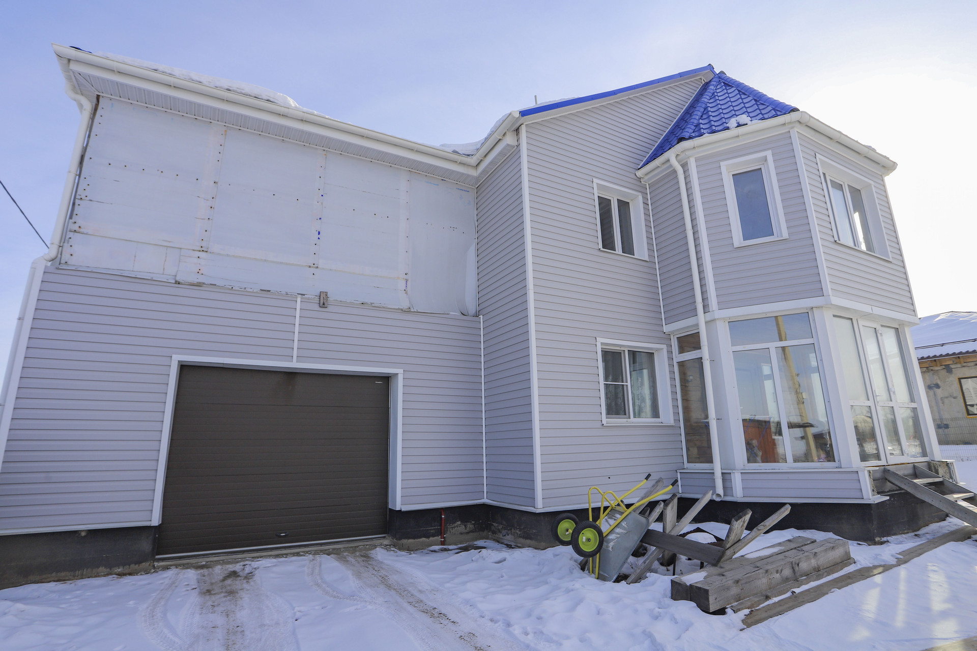 Окна 5-и камерные ВЕКА, двери, гаражные ворота с кнопки, балкон и крыльцо застеклены.