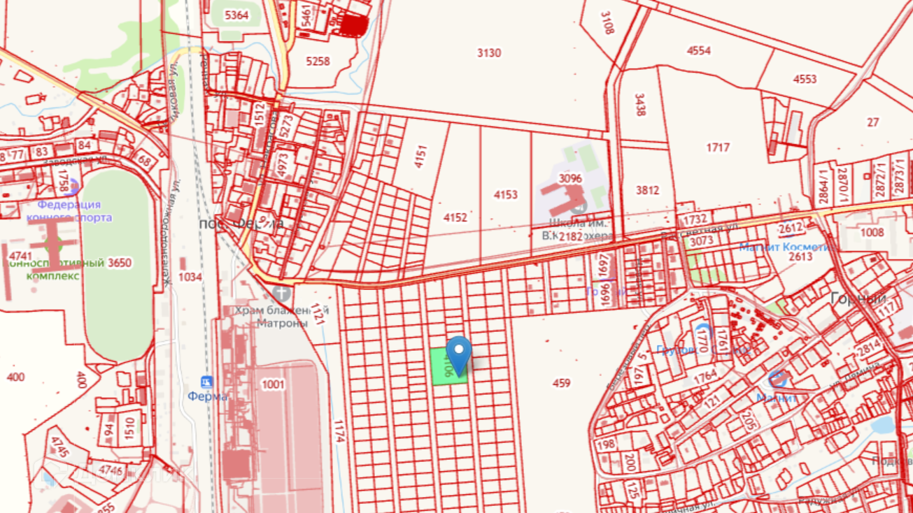 Участок находится между поселками Ферма и Горный, до города 15 минут на машине. Рядом есть остановка автобуса. В поселке школа, детский сад, магазины.