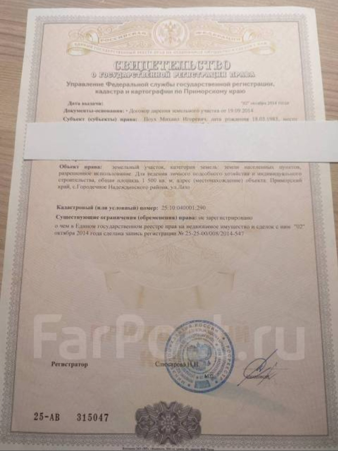 Межевание проведено, документы в порядке, один собственник.