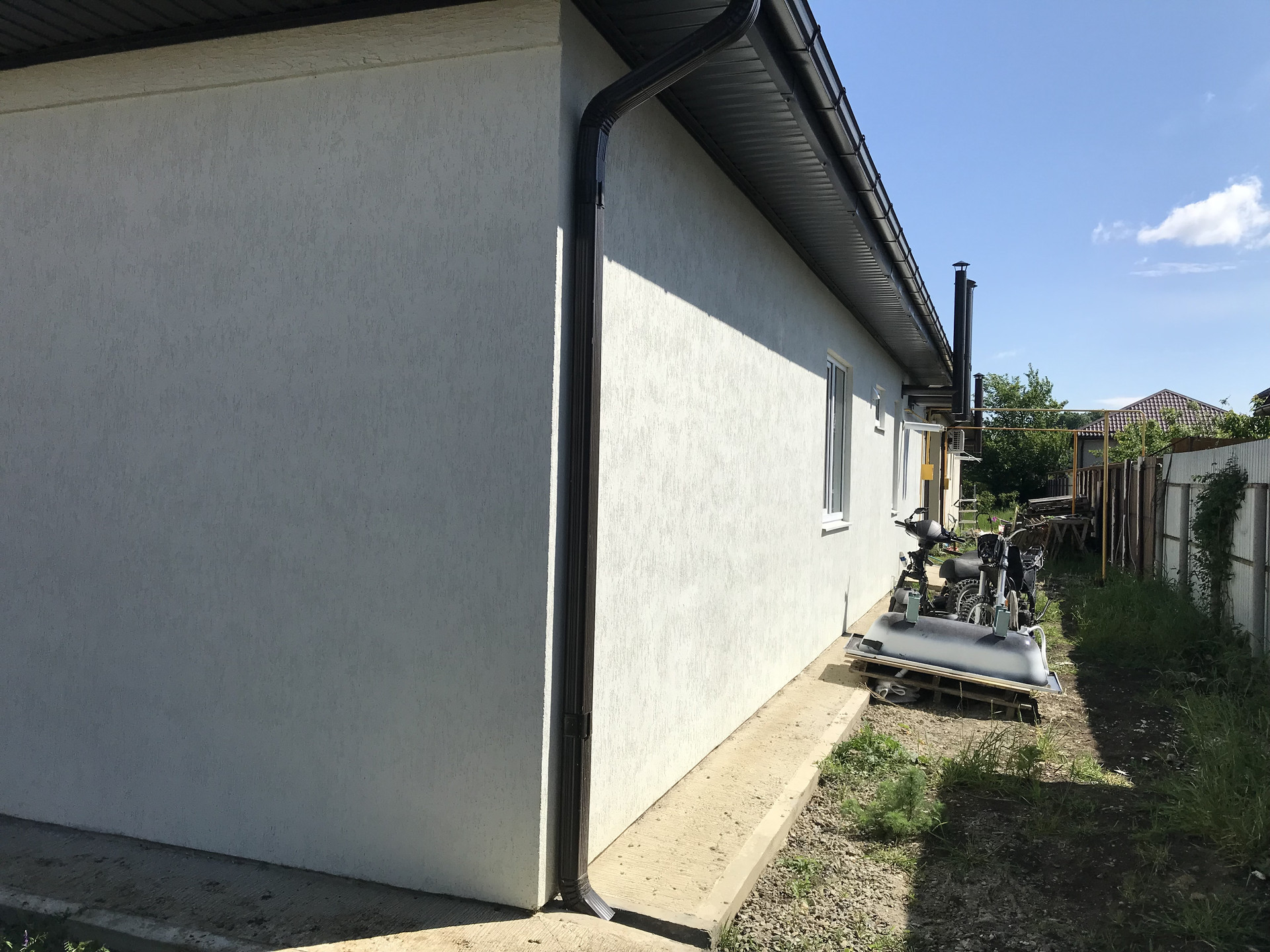 Мягкая кровля, толщина стен 40см, на участке выполнено частичное благоустройство.