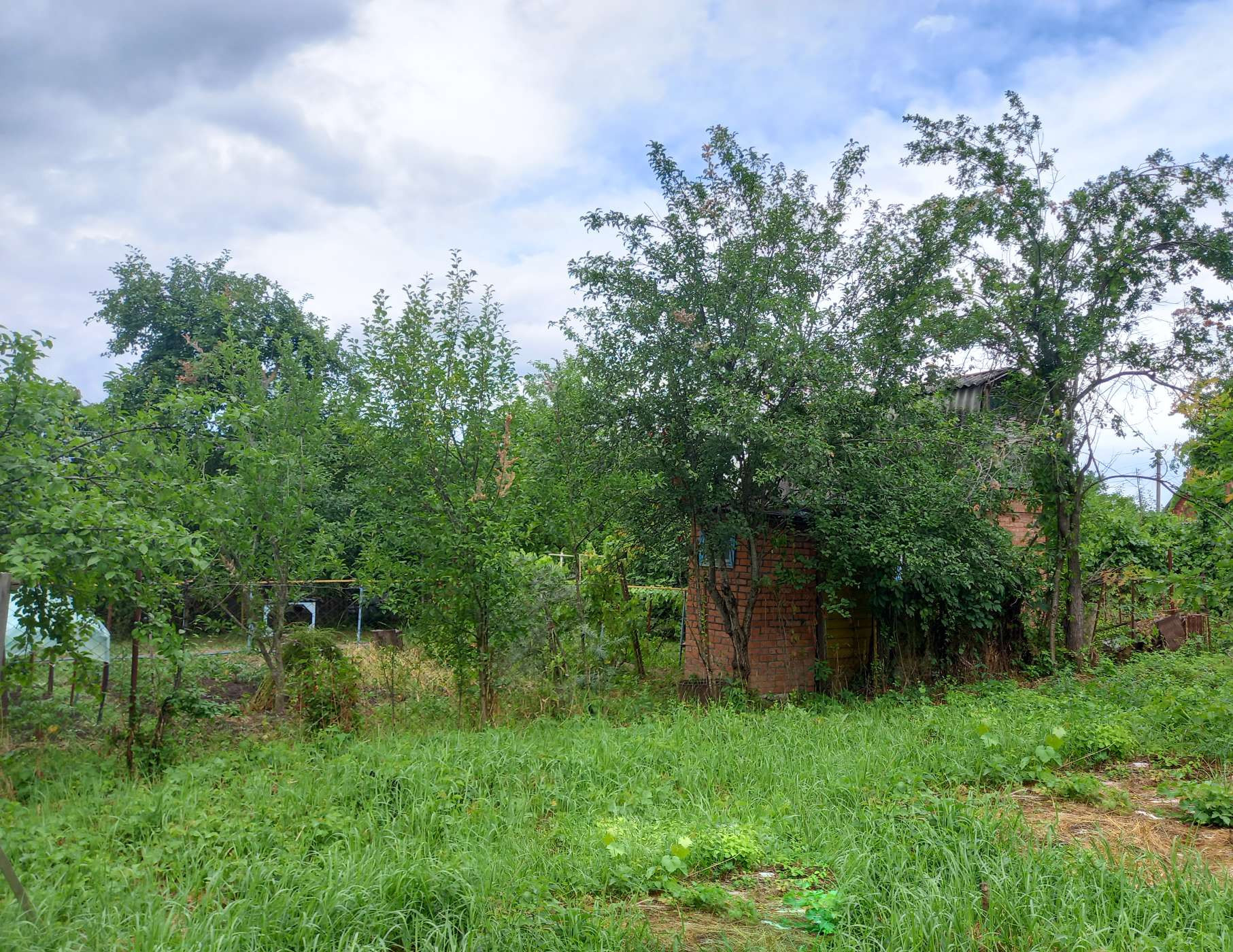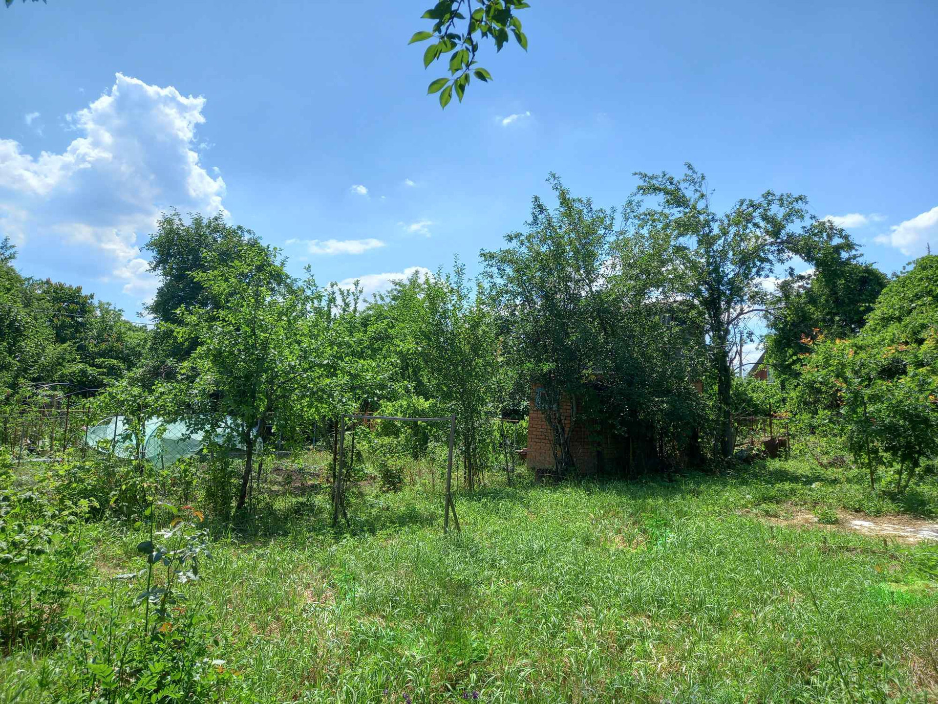 На участке много плодовых деревьев: яблони, алыча, растёт шелковица, фундук