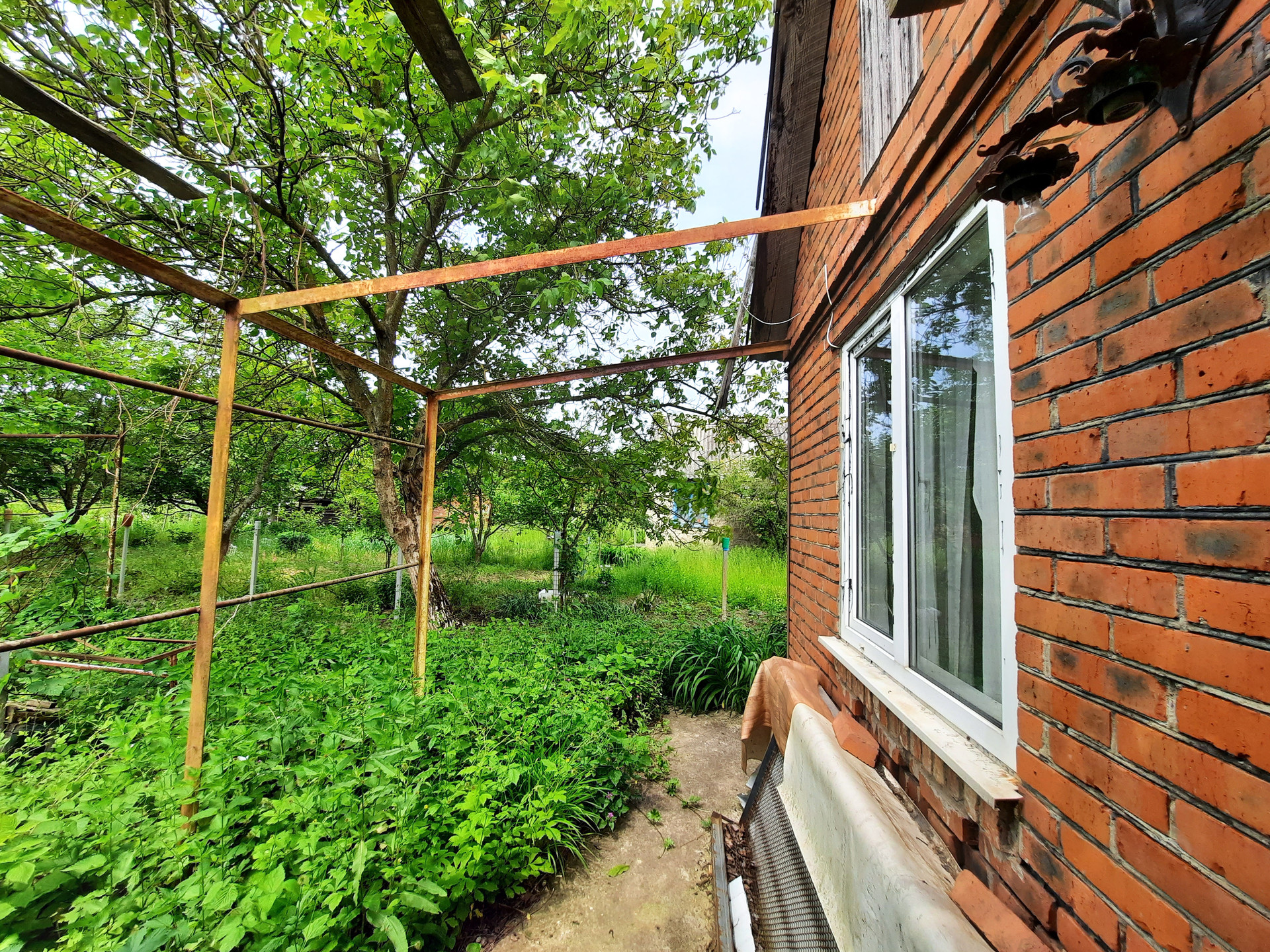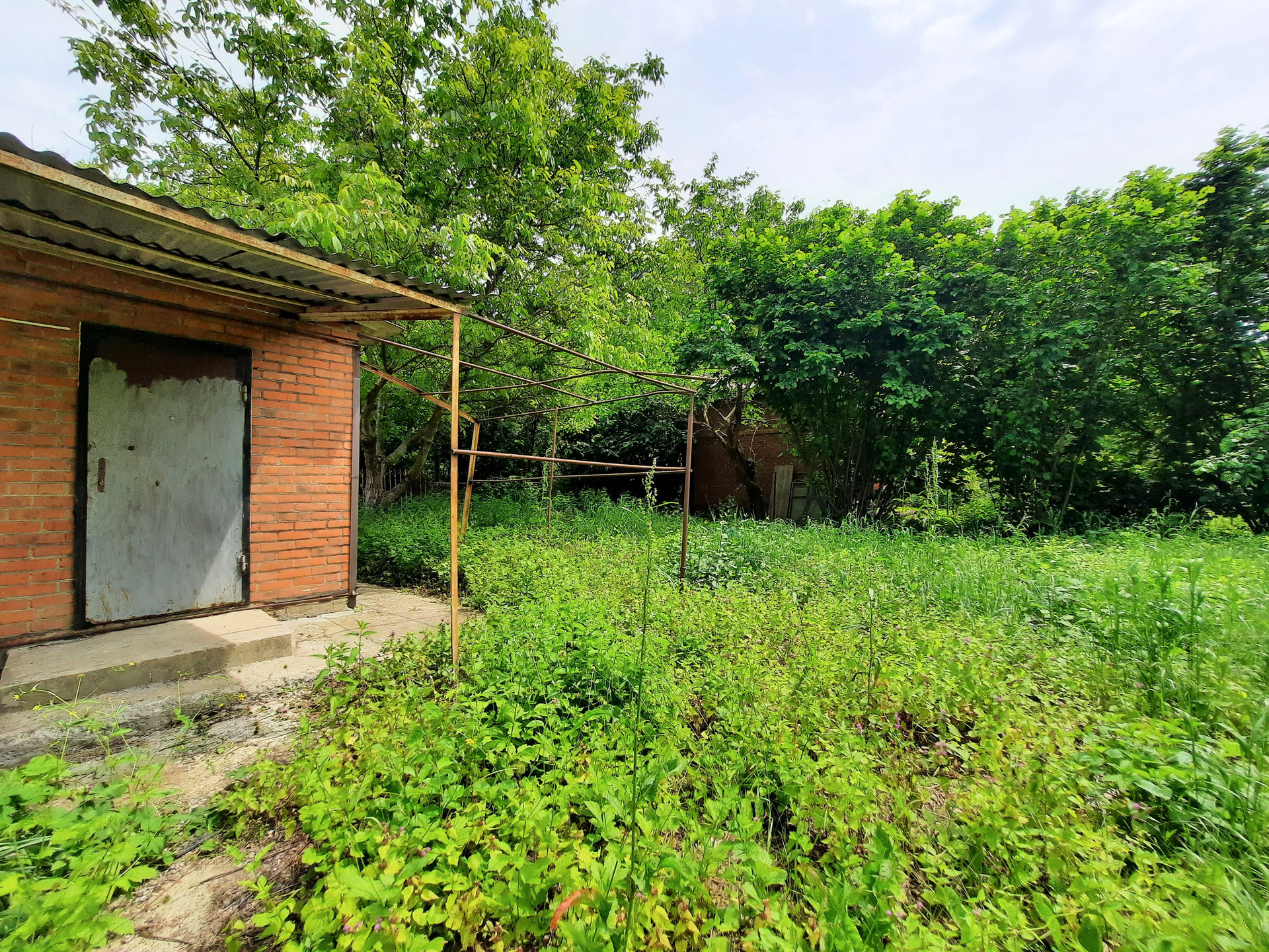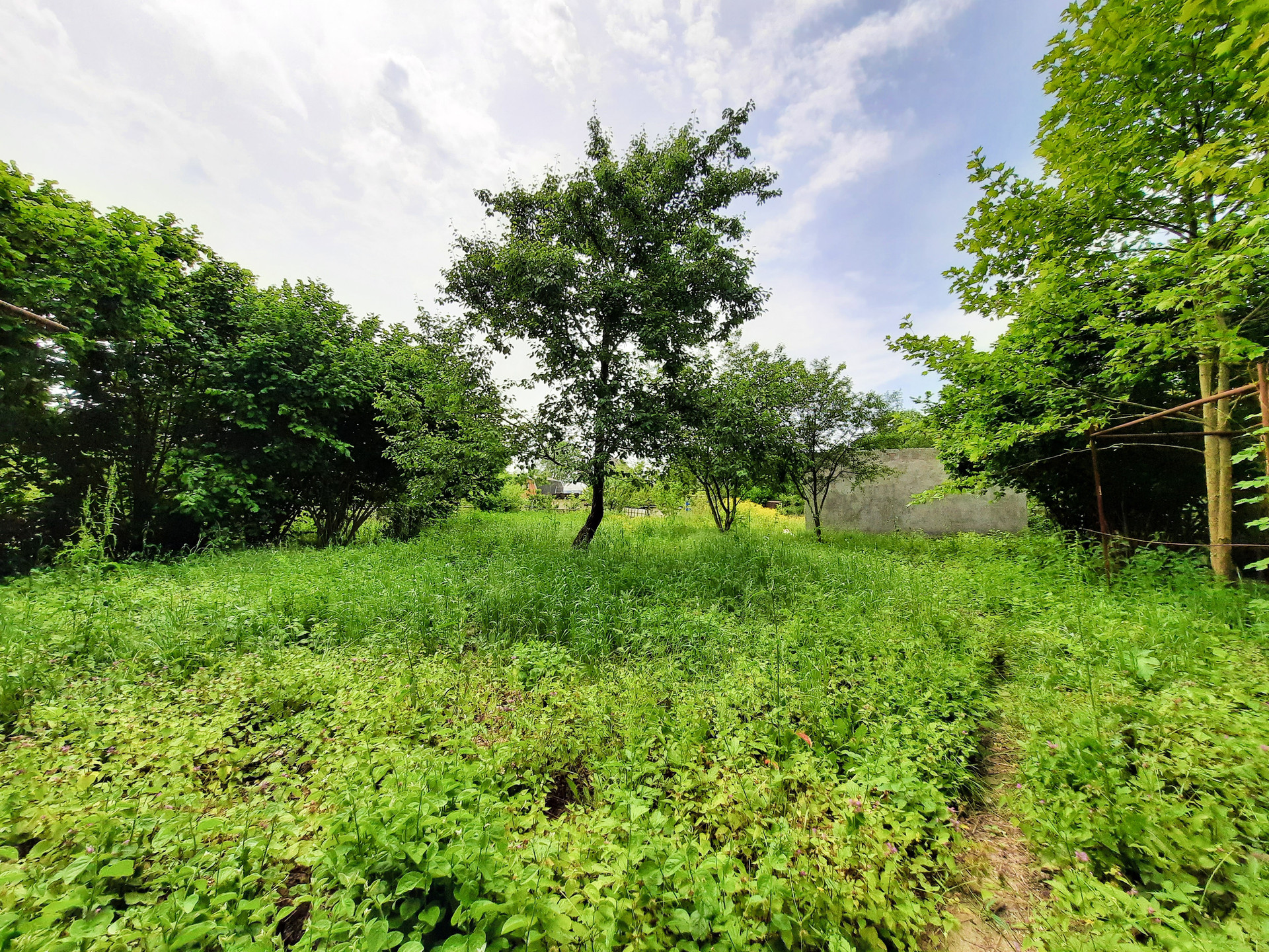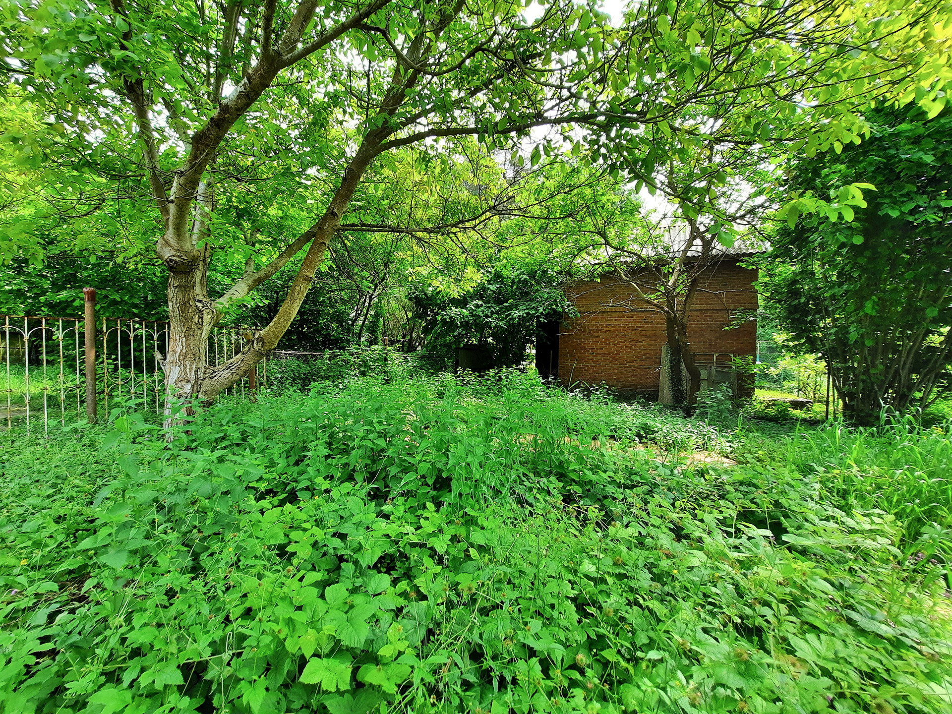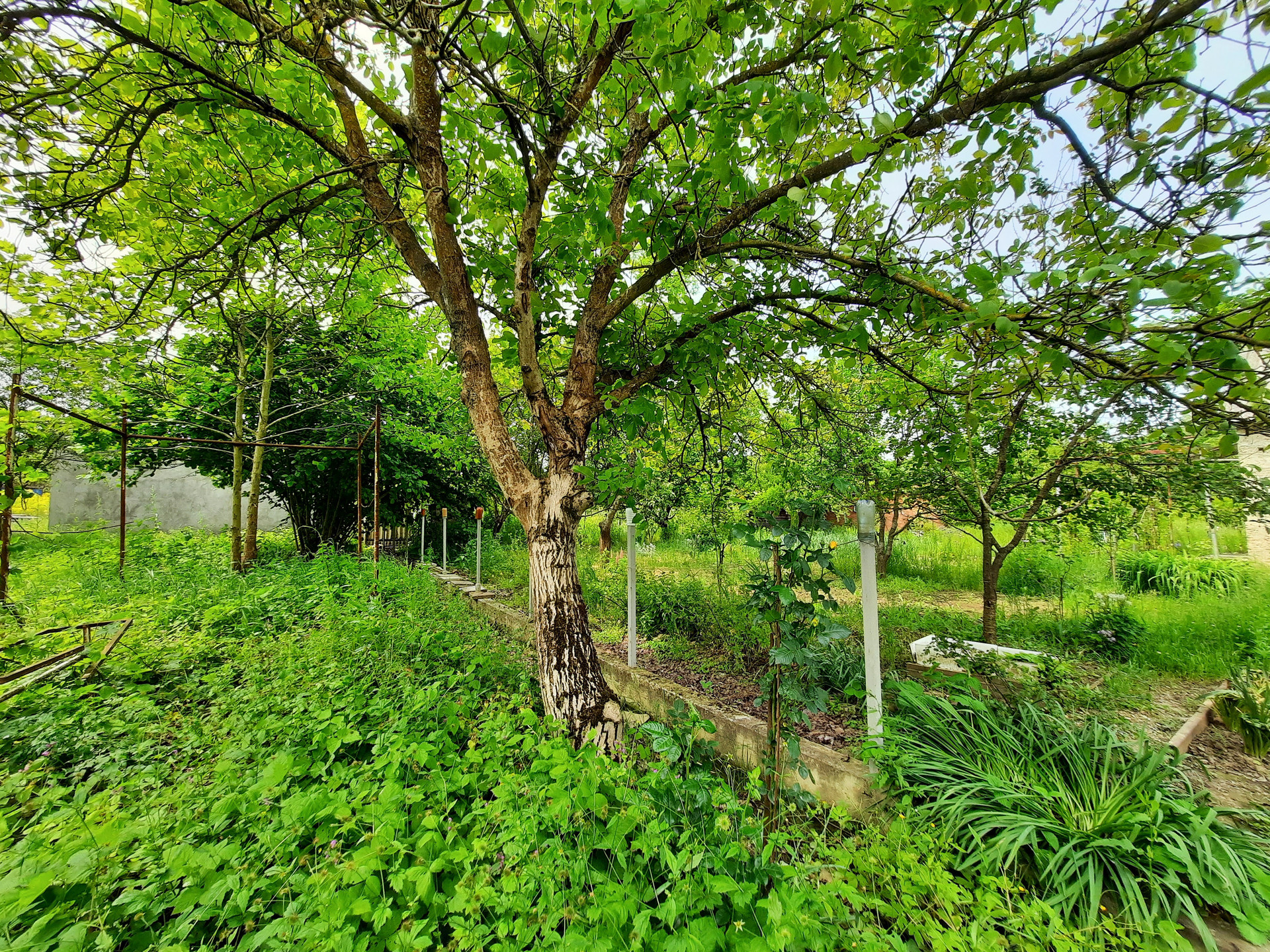 Растёт несколько плодовых деревьев, большой грецкий орех.