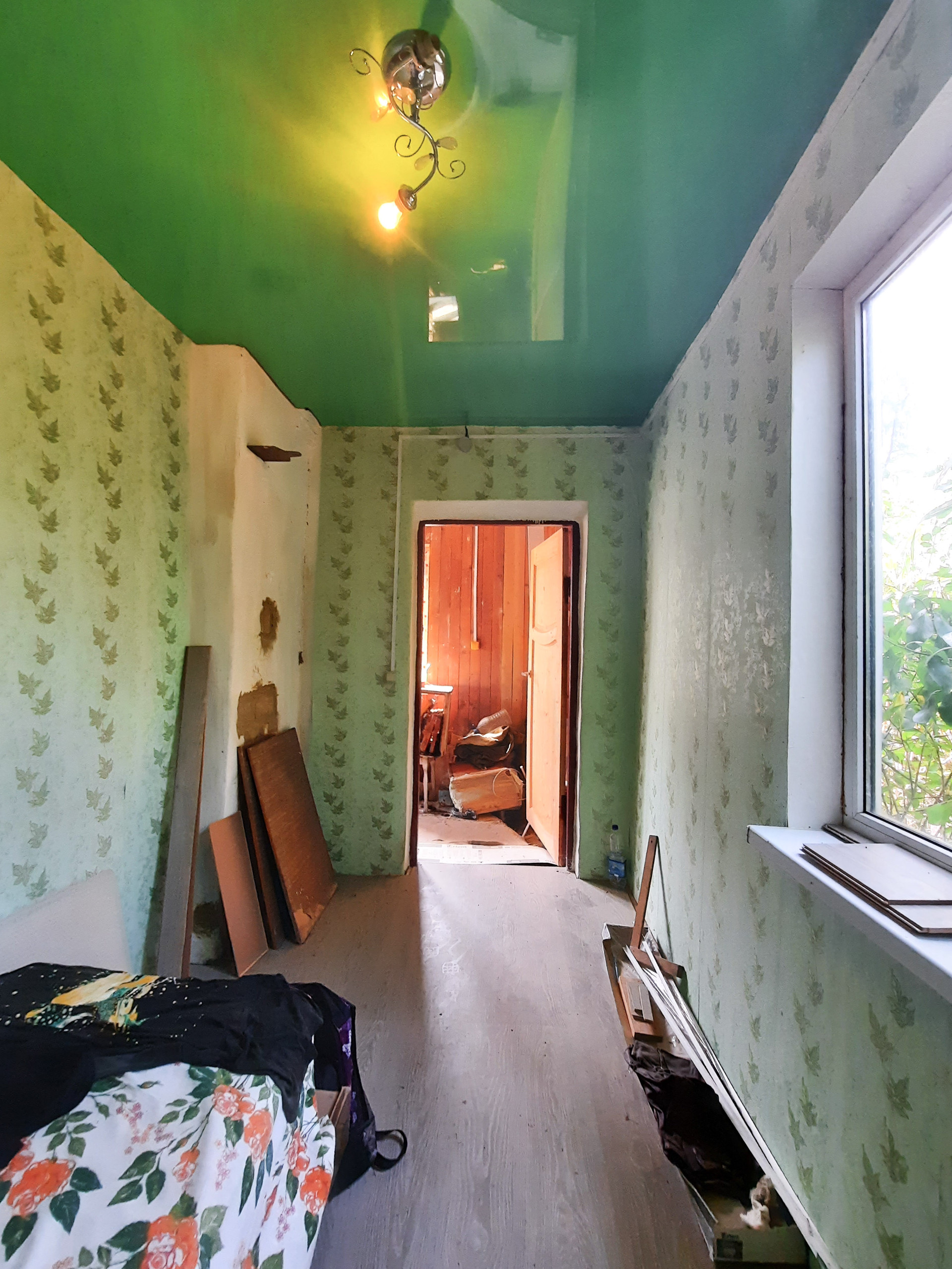 В комнатах сделан ремонт: натяжные потолки, ламинат, новые обои