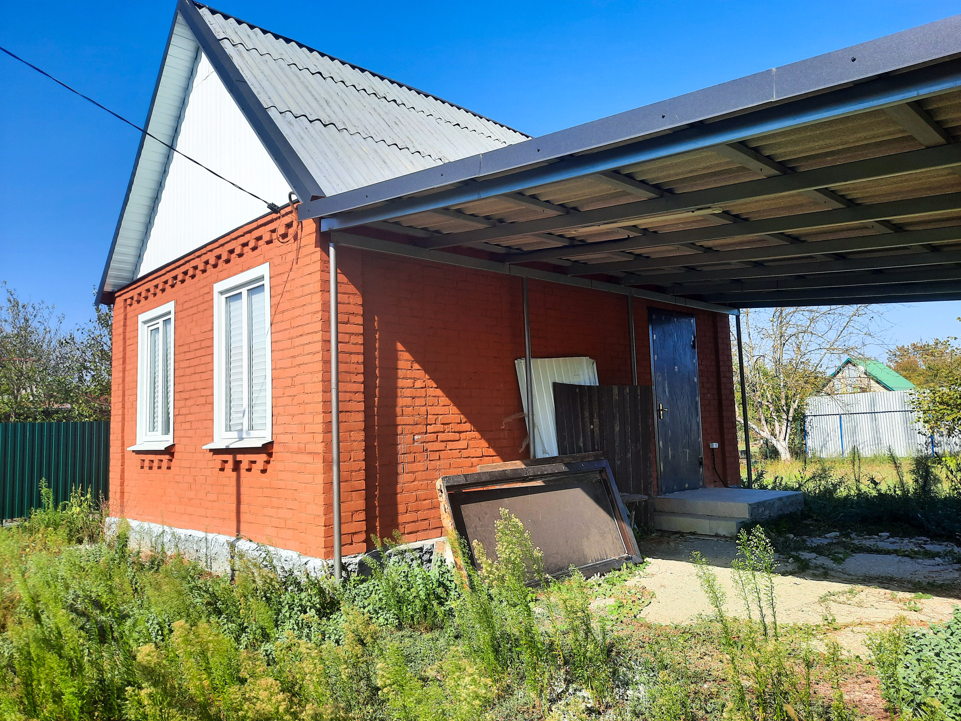 Перед домом большой капитальный навес, где можно организовать зону отдыха. Есть место для авто.