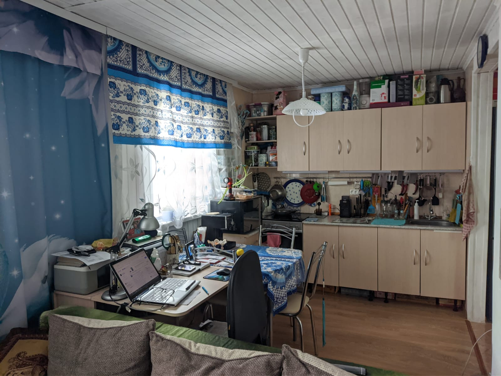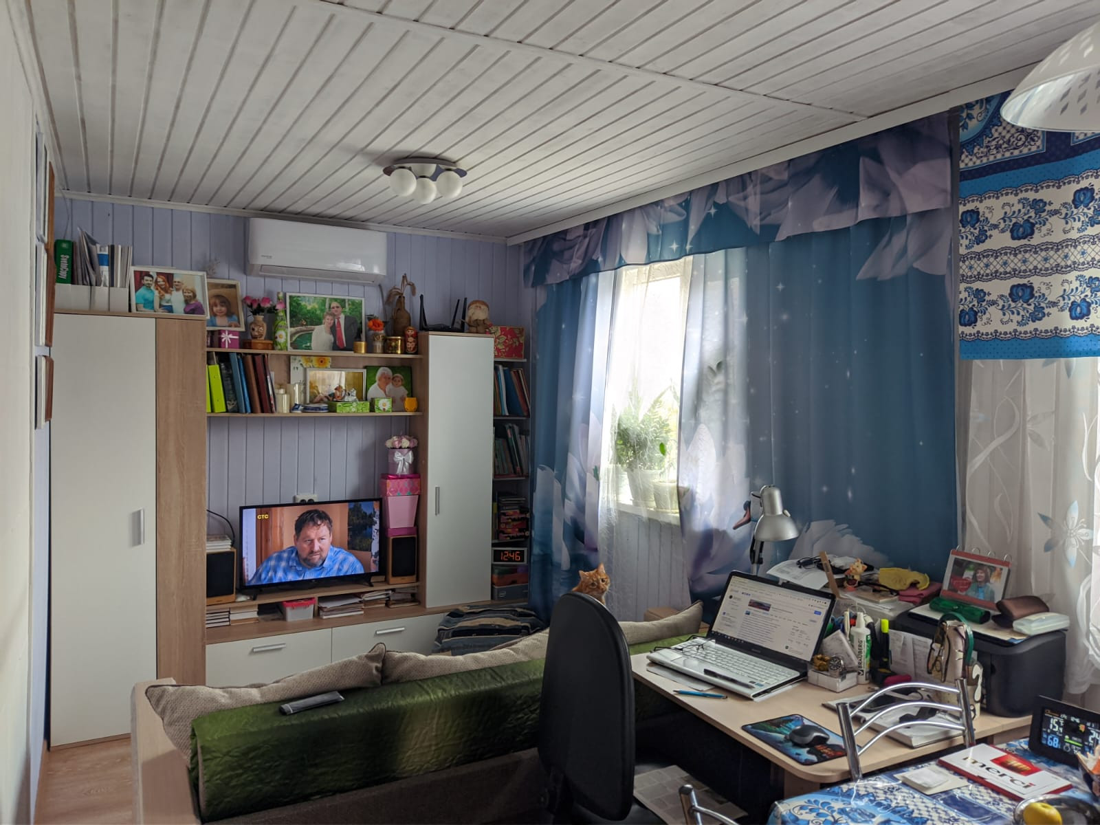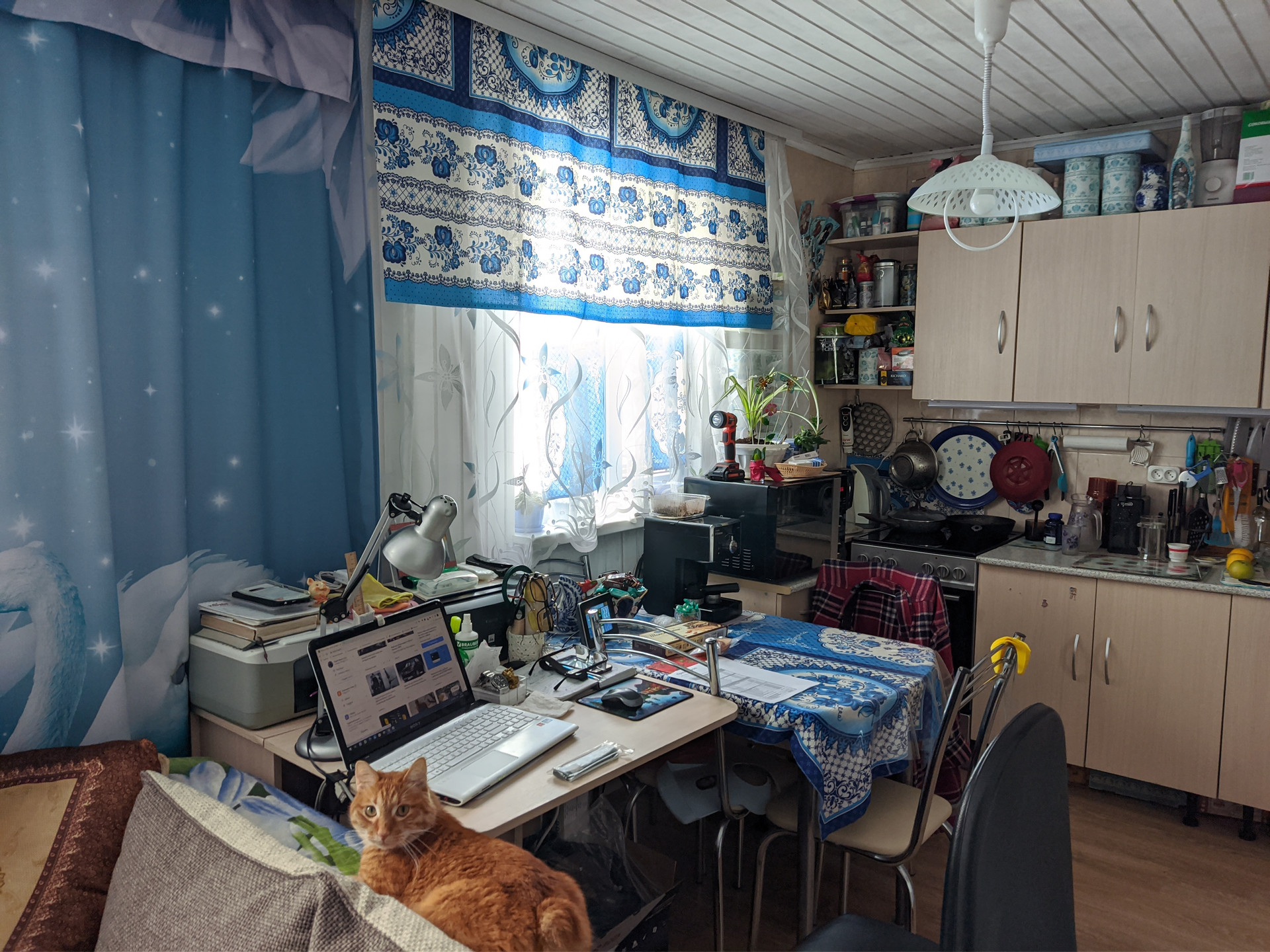 Остается кухня (кроме плиты и холодильника ), спальня полностью, гостиная (кроме дивана). На фото все видно.