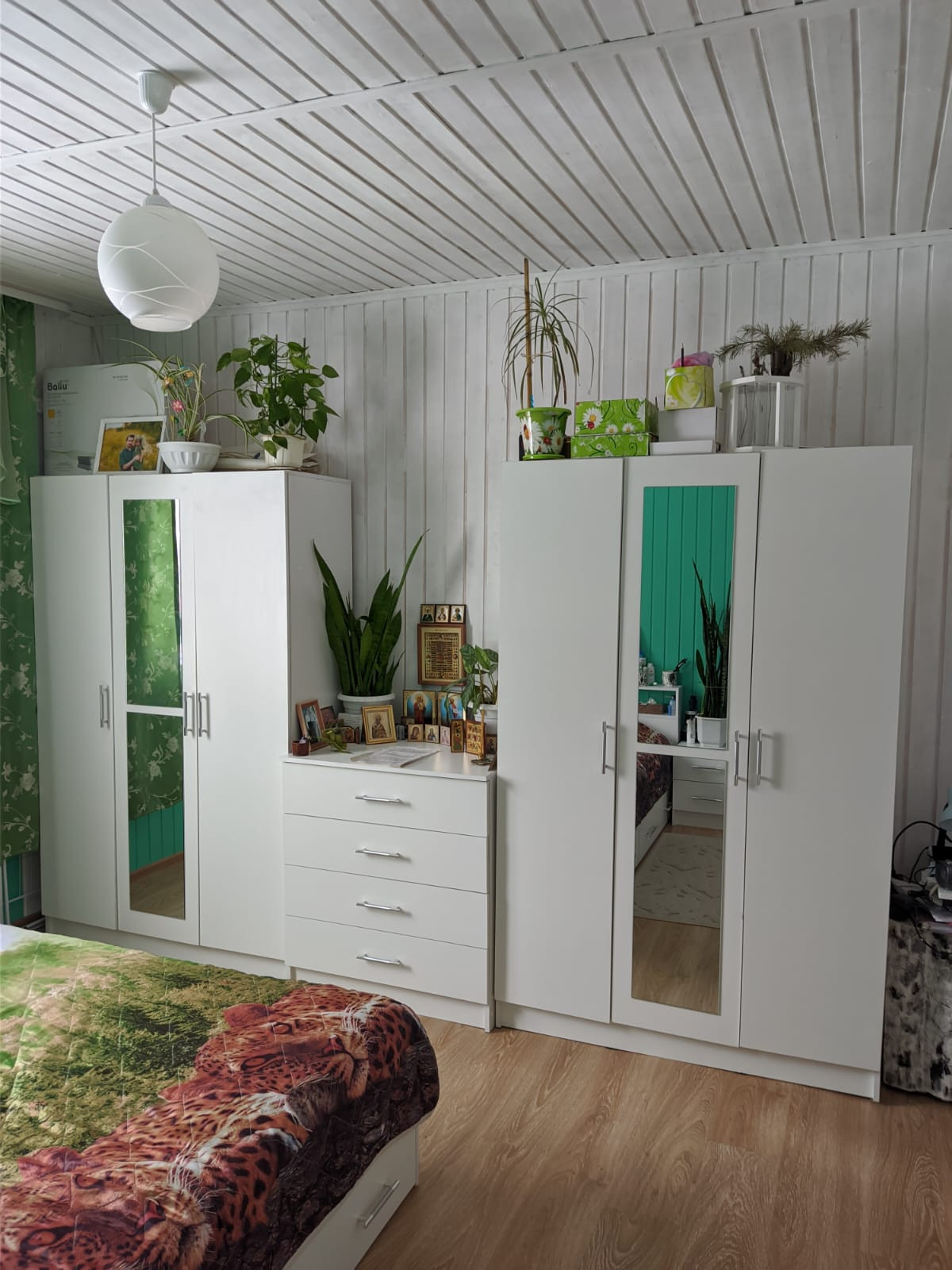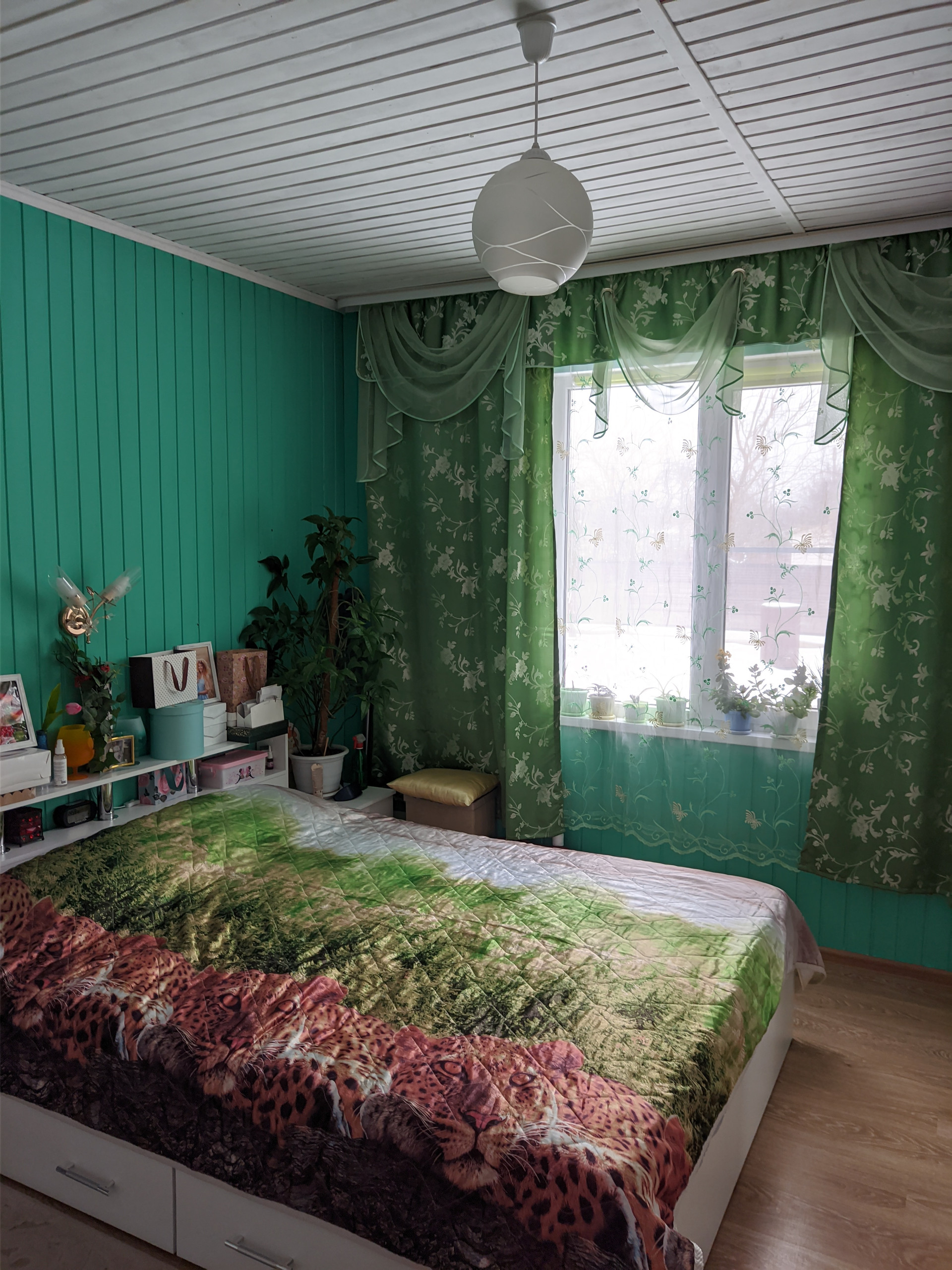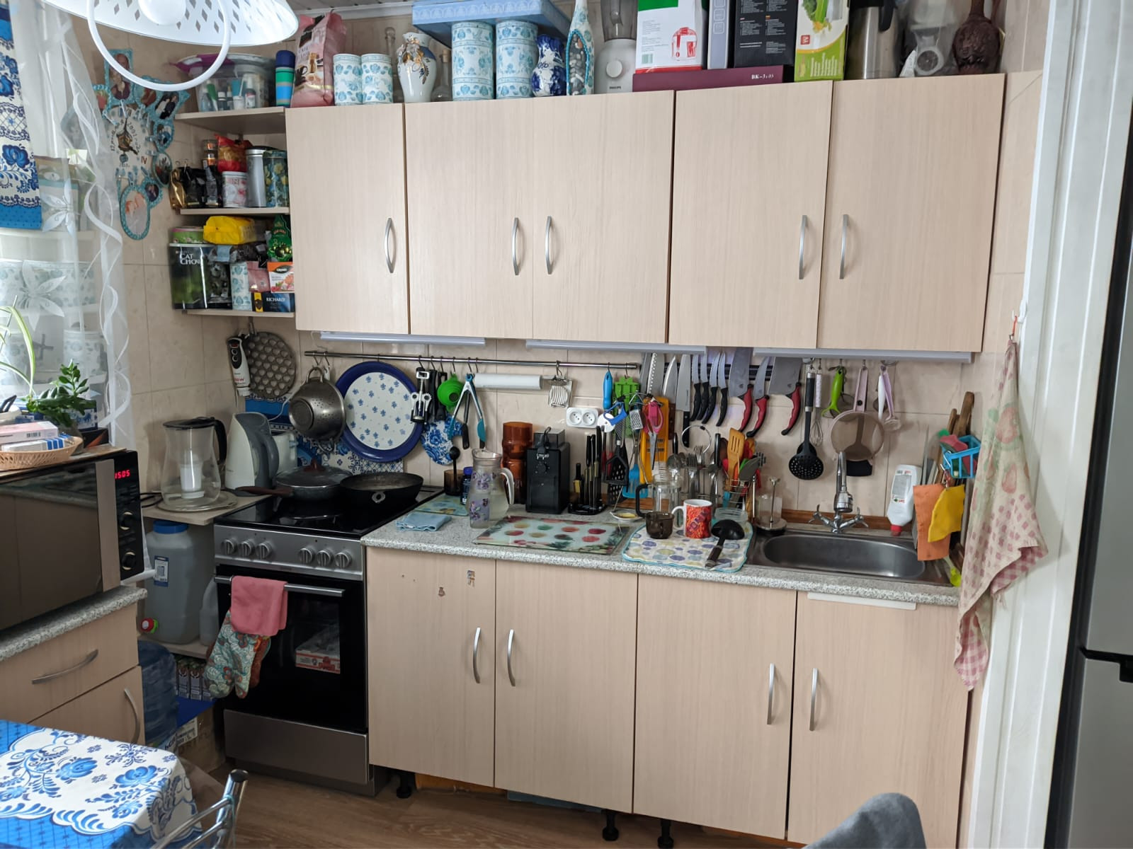 Остается кухня (кроме плиты и холодильника ), спальня полностью, гостиная (кроме дивана). На фото все видно.