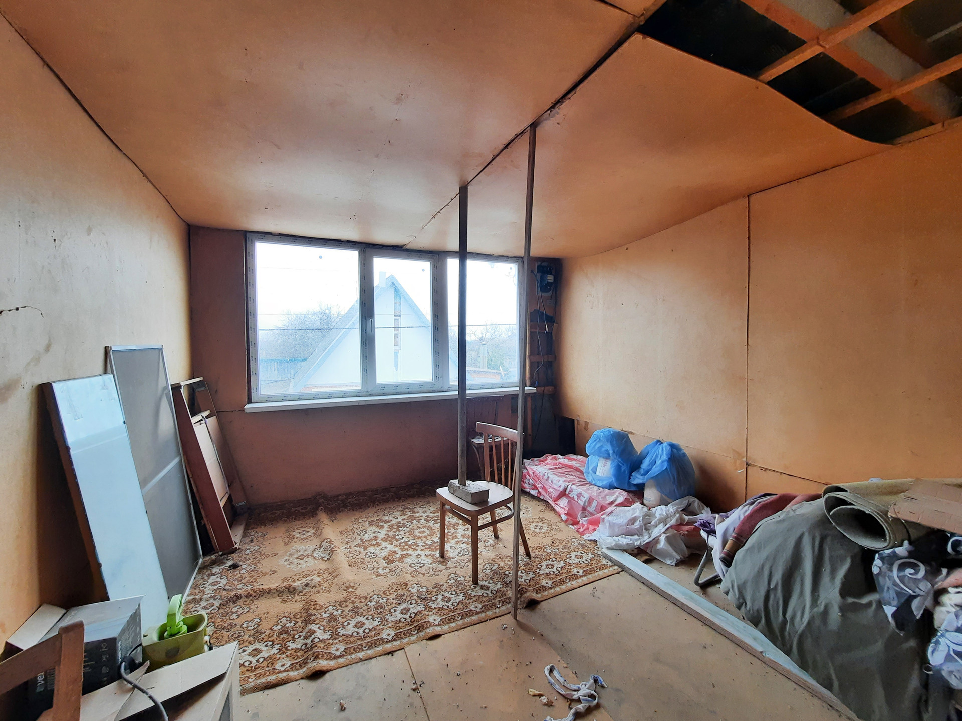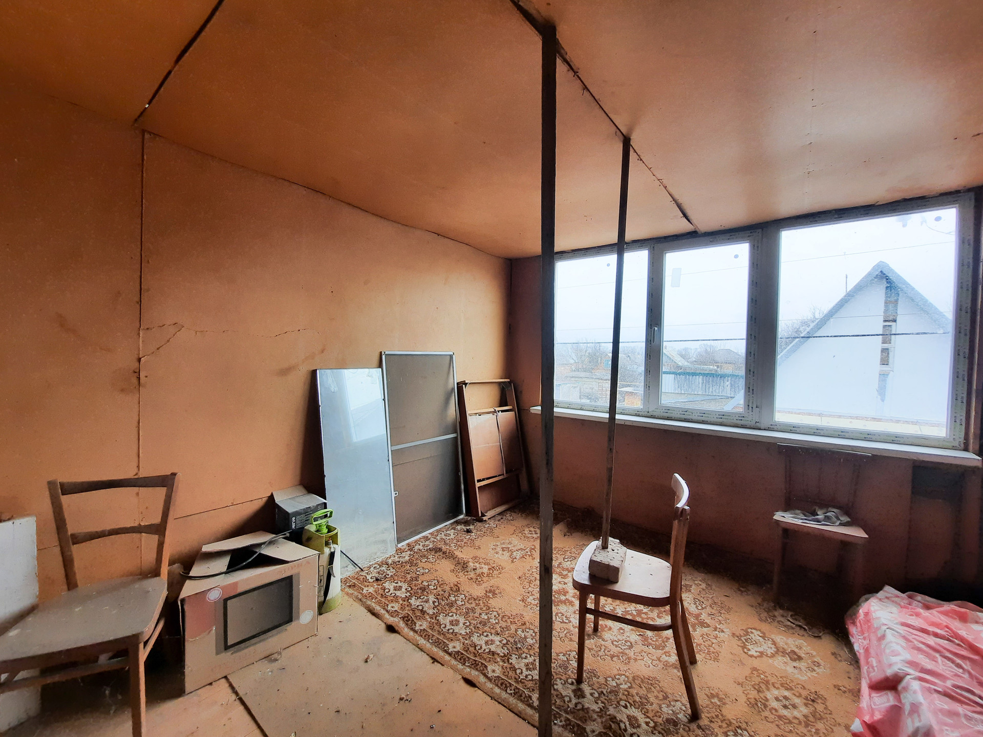 В доме на первом этаже: кухня, комната, установлена ванна, на втором этаже одна просторная комната