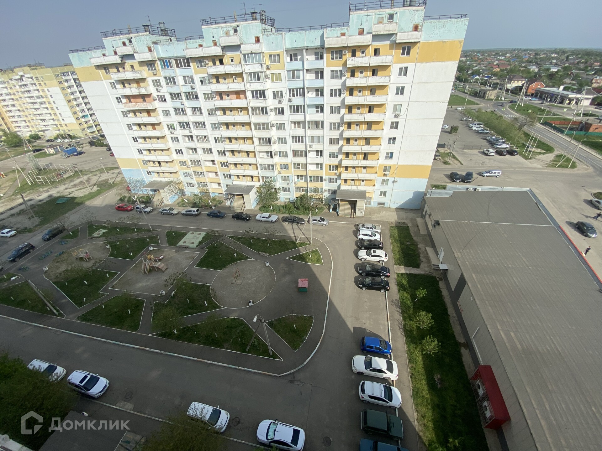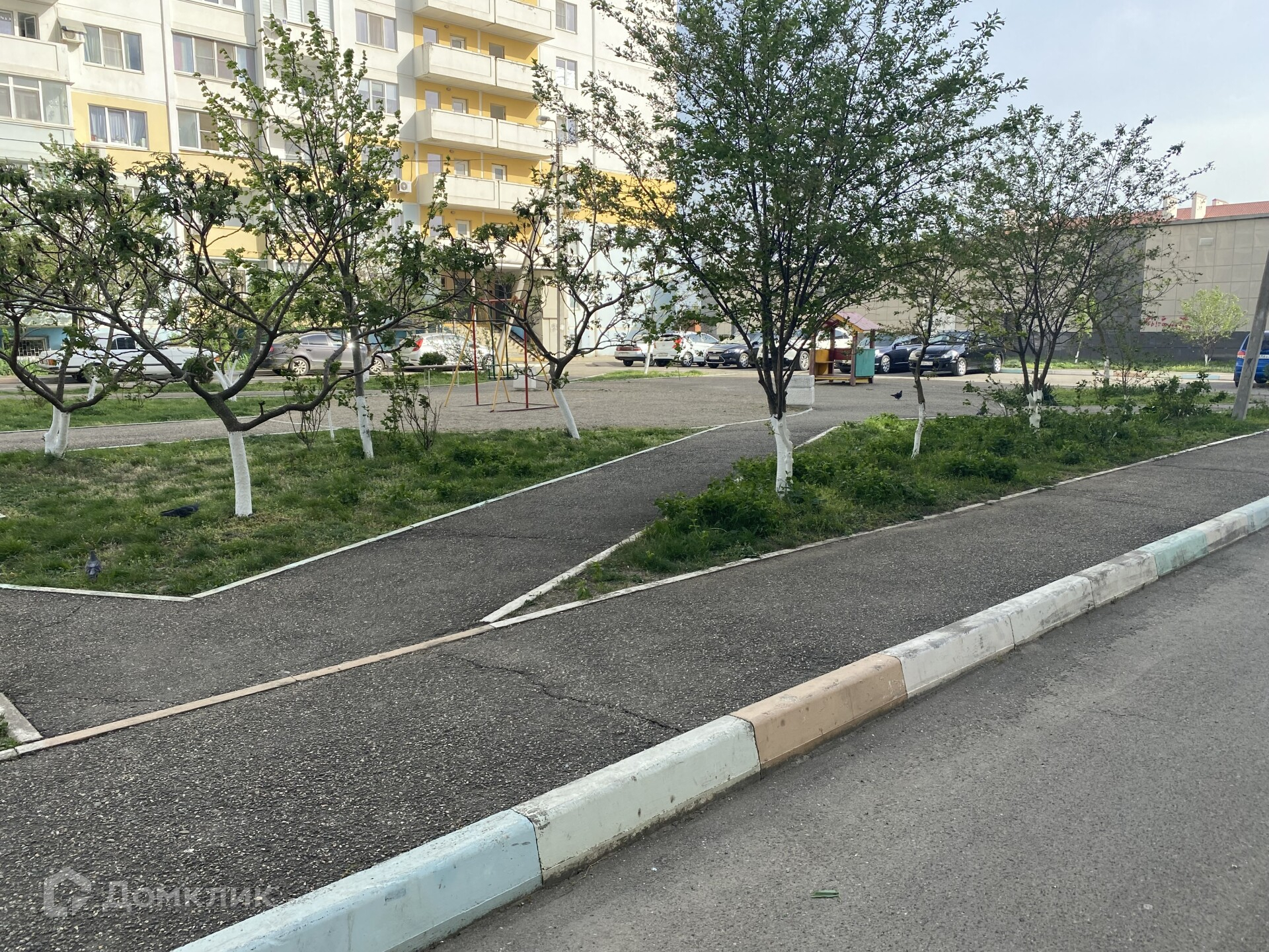 Дом расположен в хорошем спальном районе. Во дворе детская и спортивная площадка, лавочки, наземная парковка.