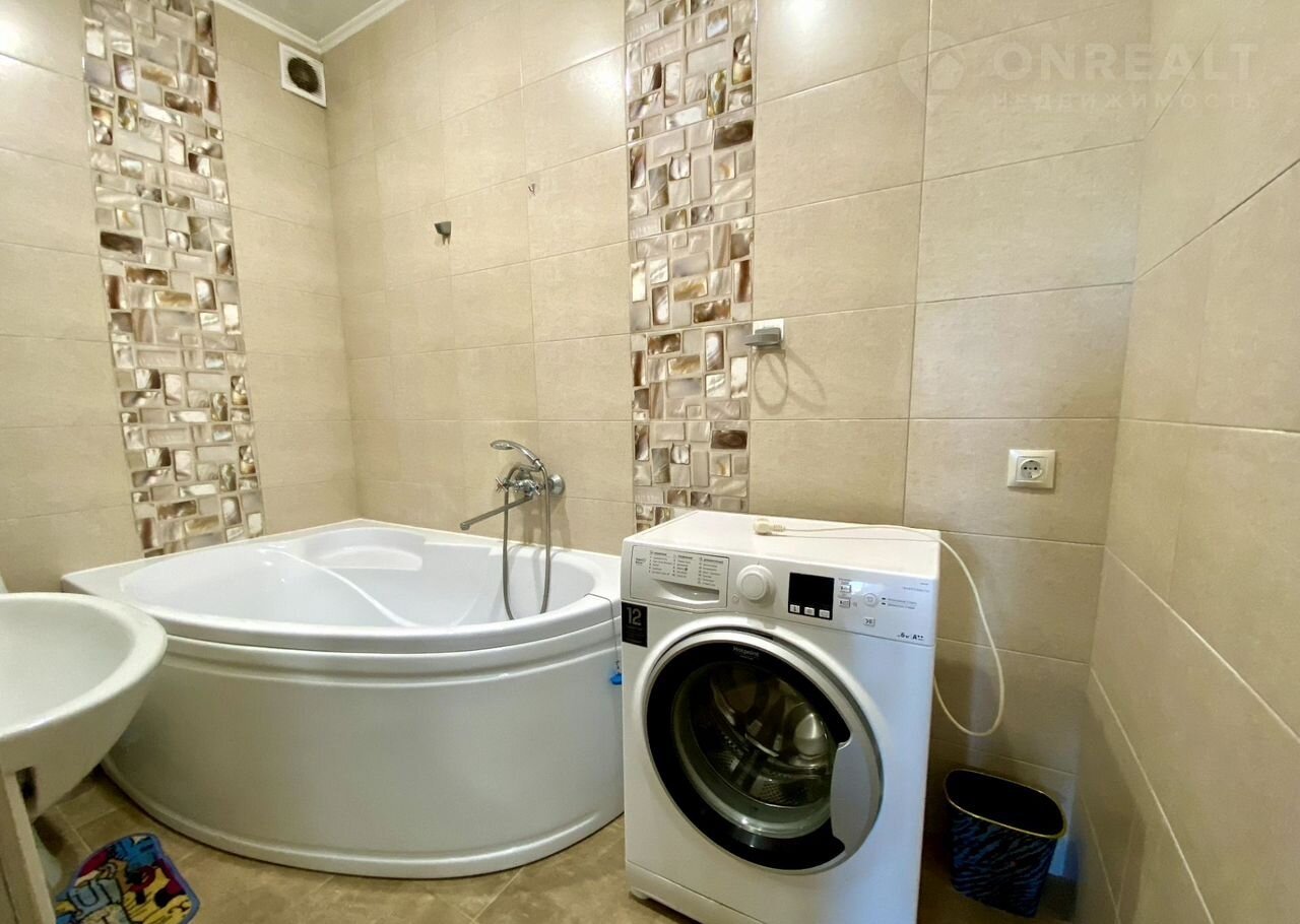 Совмещённый санузел с просторной угловой ванной — идеально, чтобы расслабиться после рабочего дня или понежиться вдвоём.