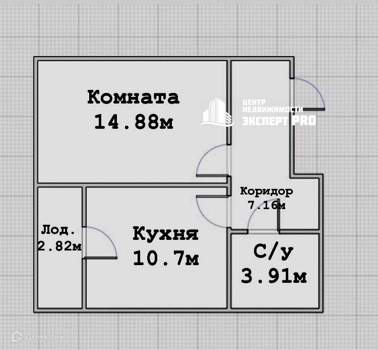 Просторная кухня 10.7 м, комната 14.88 метров квадратных. Квартира находится в середине дома, что говорит о том, что она теплая.