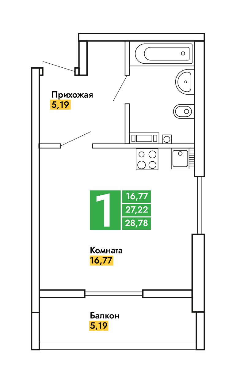 Общая площадь 28.8 м2