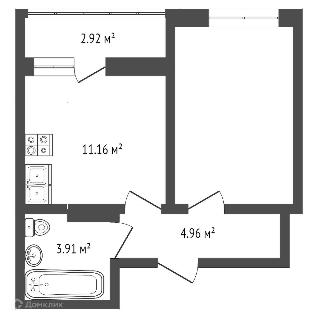 Общая площадь 32.6 м2