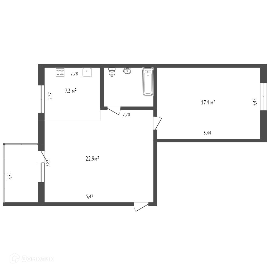 Общая площадь 55 м2