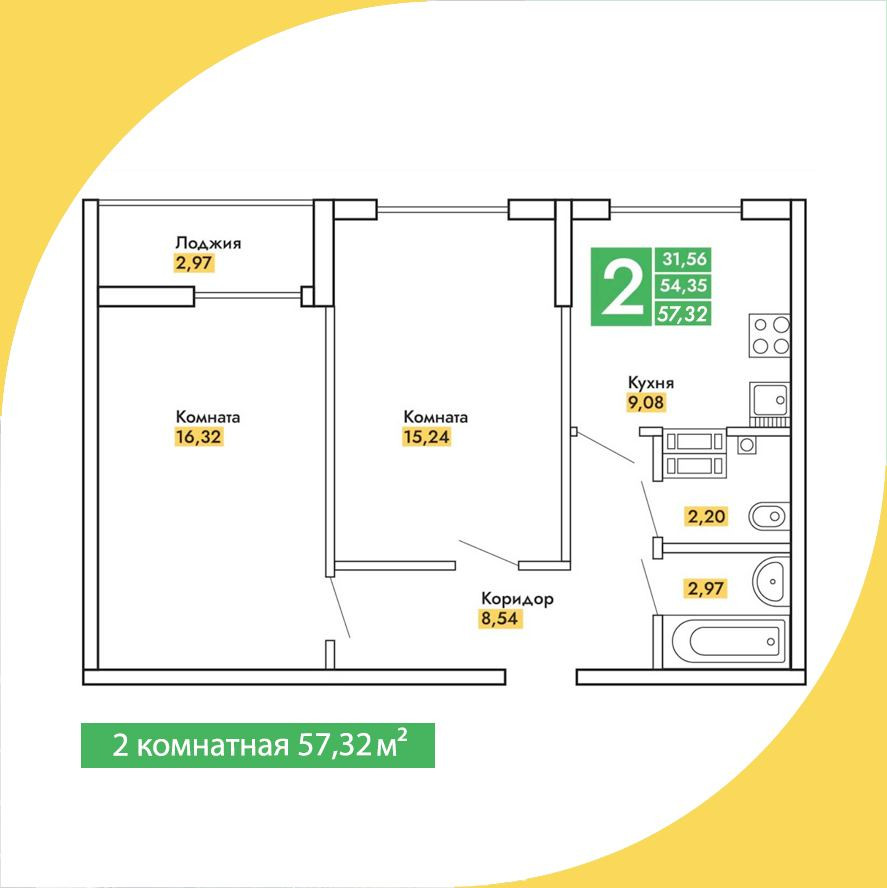 Продается 2-к квартира Общая площадь 57.23 кв.м., ( ЭСКРОУ-счет, Ипотека, Военная ипотека,маткапитал, Рассрочка от застройщика ). Ипотека от 5 % Банки РНКБ, РОССИЯ, ГЕНБАНК.