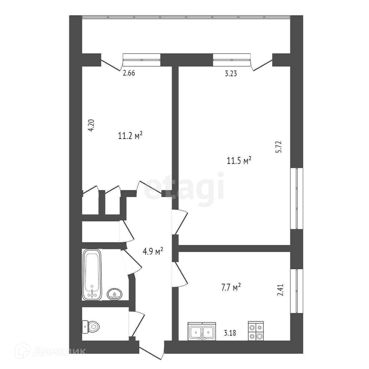 Общая площадь 46.9 м2