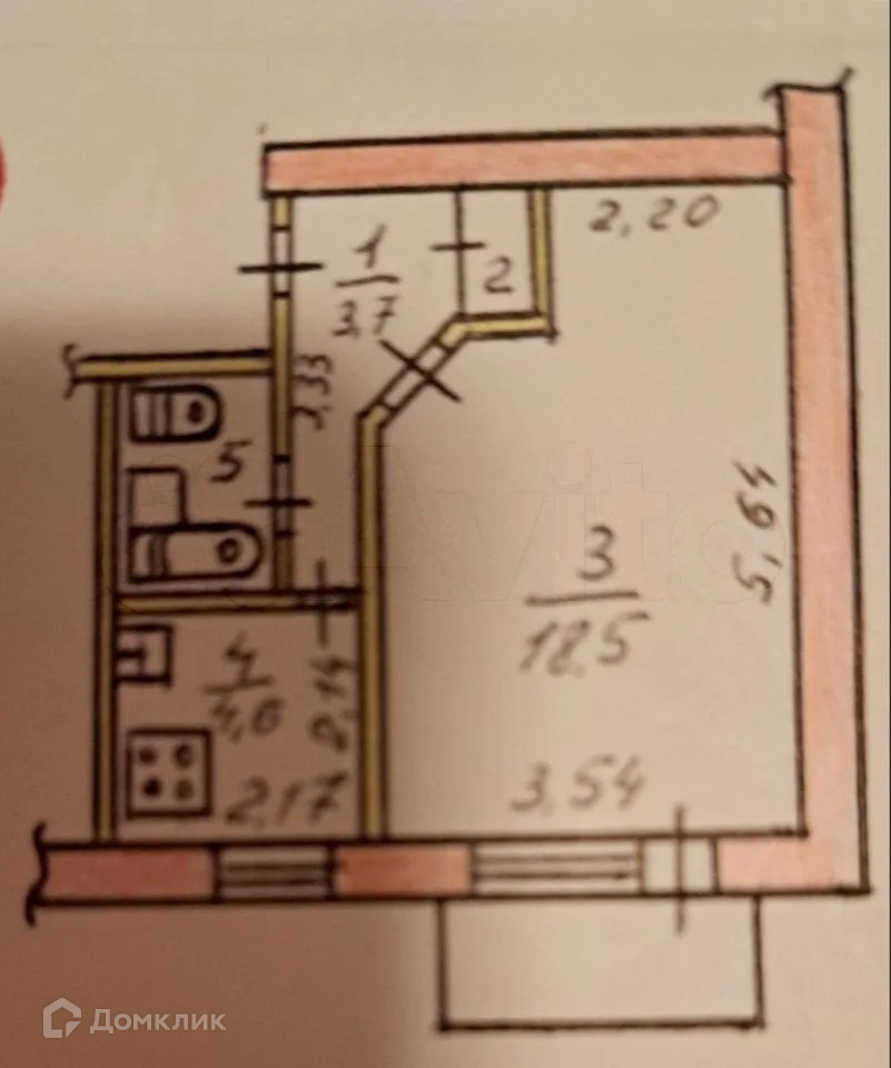 Жилая площадь 18.5 м2