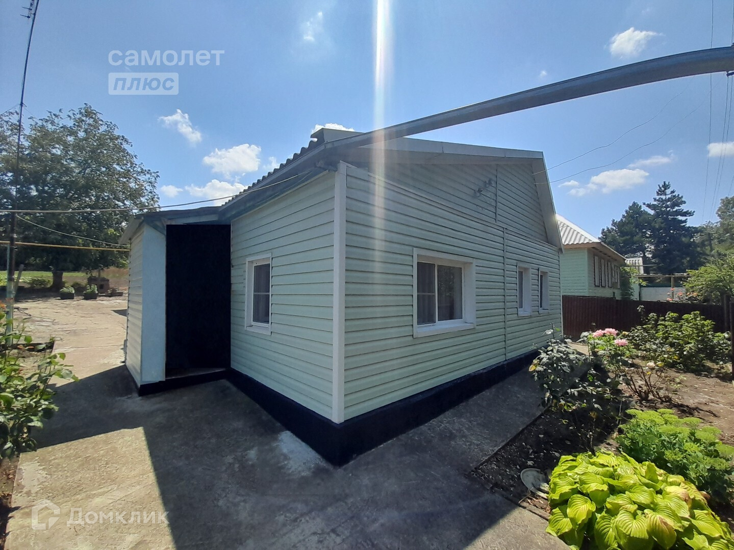 Двор забетонирован с палисадником.