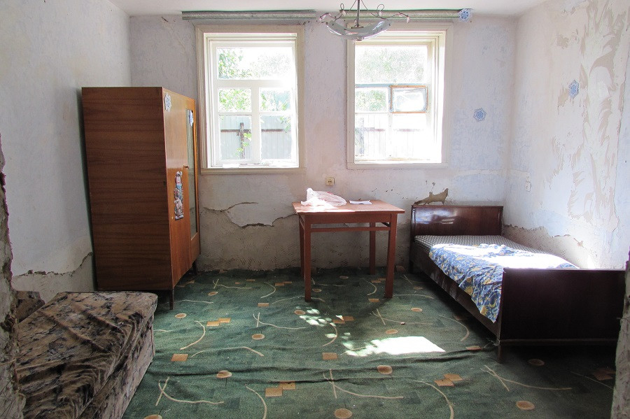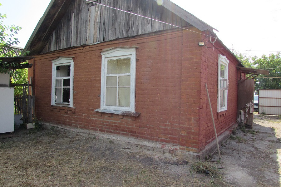 Продам дом 48 кв.. на земельном участке 15 соток, фасад 23 метра. Материал стен саман облицованный кирпичом, в доме нужен ремонт ( часть полов залита и стены частично оштукатурены. В доме зал, две изолированные комнаты, ванная. Отопление газовое (голландка), вода в дом введена. Во дворе  газифицированная кухня с двумя комнатами и кладовой, отопление голландка ( можно использовать как отдельно стоящий жилой дом). Все коммуникации центральные (газ, свет, вода- установлены приборы учета). На участке хозяйственные постройки, уборная. Много плодоносящих деревьев (яблони, груши, абрикос, виноград и т.д). Придомовая территория широкая, удобный заезд для машины, участок огорожен по всему периметру. Дом расположен в хорошем месте рядом (магазины, СОШ, детские сады и т.д)