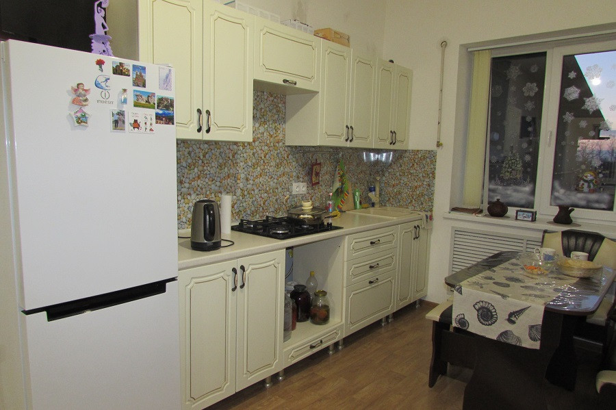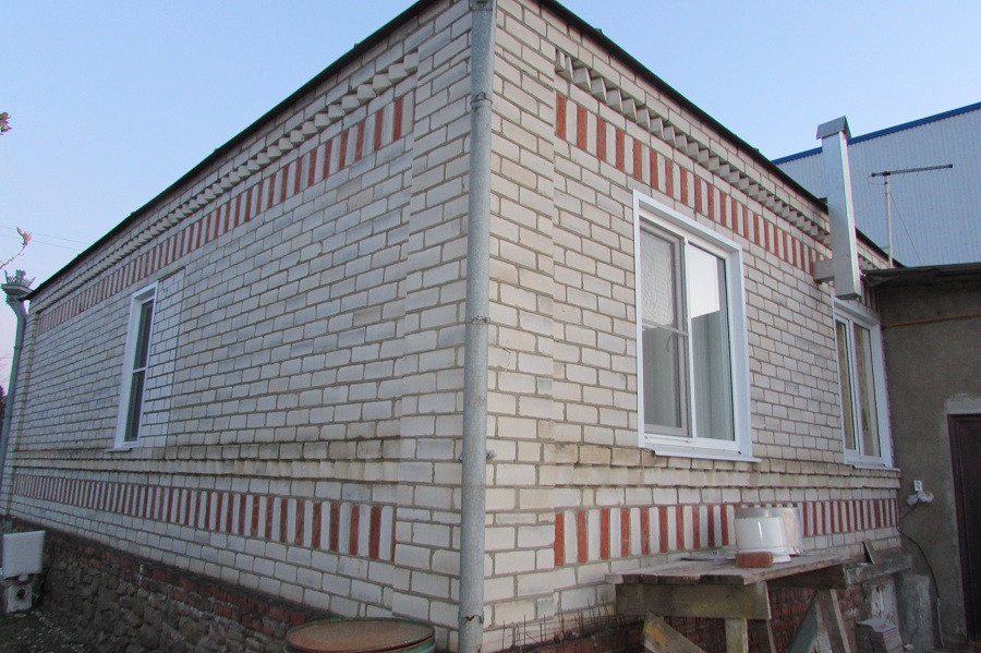 Продам дом 1991 года постройки 63 кв.м. на земельном участке 8 соток. Фундамент крепкий, цоколь высокий 60см, материал стен кирпич, окна установлены пластиковые, высота потолков 280см, кровля заменена 2014 году шифер. Электропроводка полностью заменена в 2х-домах, ремонт делался для себя (еще не полностью завершён). В доме прихожая, кухня 13 кв.м, зал 14,3 кв.м, две изолированные спальни 9кв.м. и 8 кв.м, сан/узел совмещен 7 кв.м. Отопление газовый котел, все коммуникации центральные (газ,свет,вода) установлены приборы учета, для полива скважина, горячая вода электро-бойлер, канализация (переливной септик). Пол в прихожей и ванной комнате теплые выложены кафельной плиткой. Двор забетонирован, удобный заезд для машины. Во дворе жилая, кирпичная летняя кухня 46 кв.м. с гостевой комнатой и сан/узлом — все коммуникации подведены (газ,свет,вода). Пол выложен кафельной плиткой, потолки натяжные. Участок ухожен, есть плодоносящие деревья. Рядом магазины, асфальтированная дорога, СОШ№10, автобусная остановка.