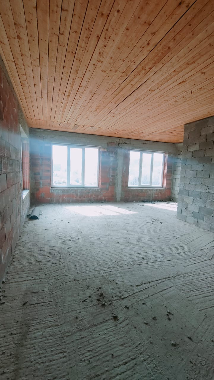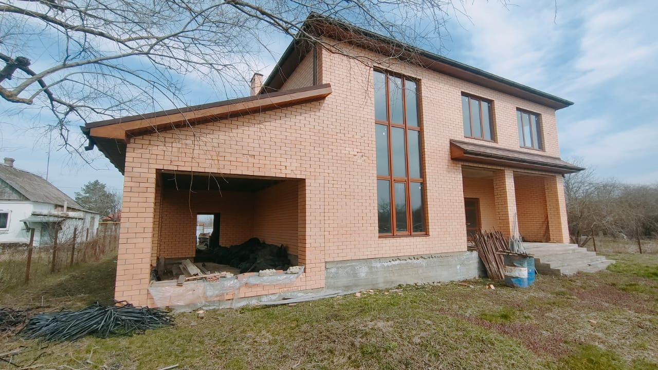 Продажа шикарного дома 360 кв.метра на земельном участке 20 соток в пгт. Ахтырская для большой семьи в черновой отделке. Стены дома выполнены из парамакс+пенопласт+кирпич, кровля-магкая кровля, фундамент-ленточный+сваи+плита. В доме 3 выхода: во двор, на террасу, на улицу. Дом выполнен в 4-ех уровнях: 1 этаж- 2 гаража 50 м2, котельная, терраса; 2 этаж-кухня, гостиная высота потолка 6м, коридор, спальня, ванная+сан.узел, прихожая, кладовая; 3 этаж- 1 большая комната;  4 этаж-коридор, 2 комнаты, ванная+сан.узел. Коммуникации: центральное водоотведение, электричество, колодец, скважина, газ по меже. На территории -домик-гостиная 24 м2. Большой участок. Вид из окон на горы и на озера. Расположен в 2 км. от инфраструктуры.