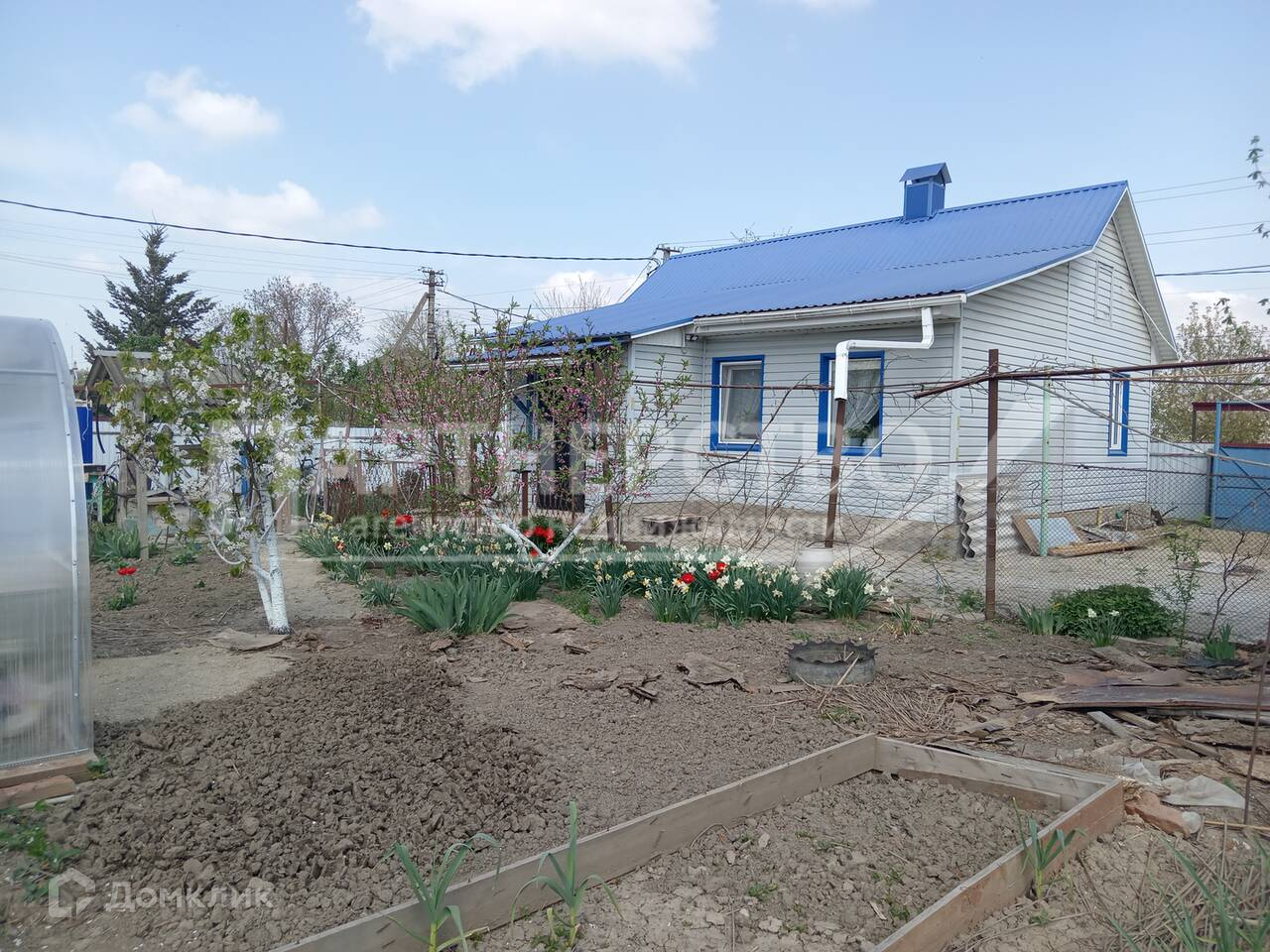 На участке имеется две теплицы, фруктовые деревья, летний туалет, душ