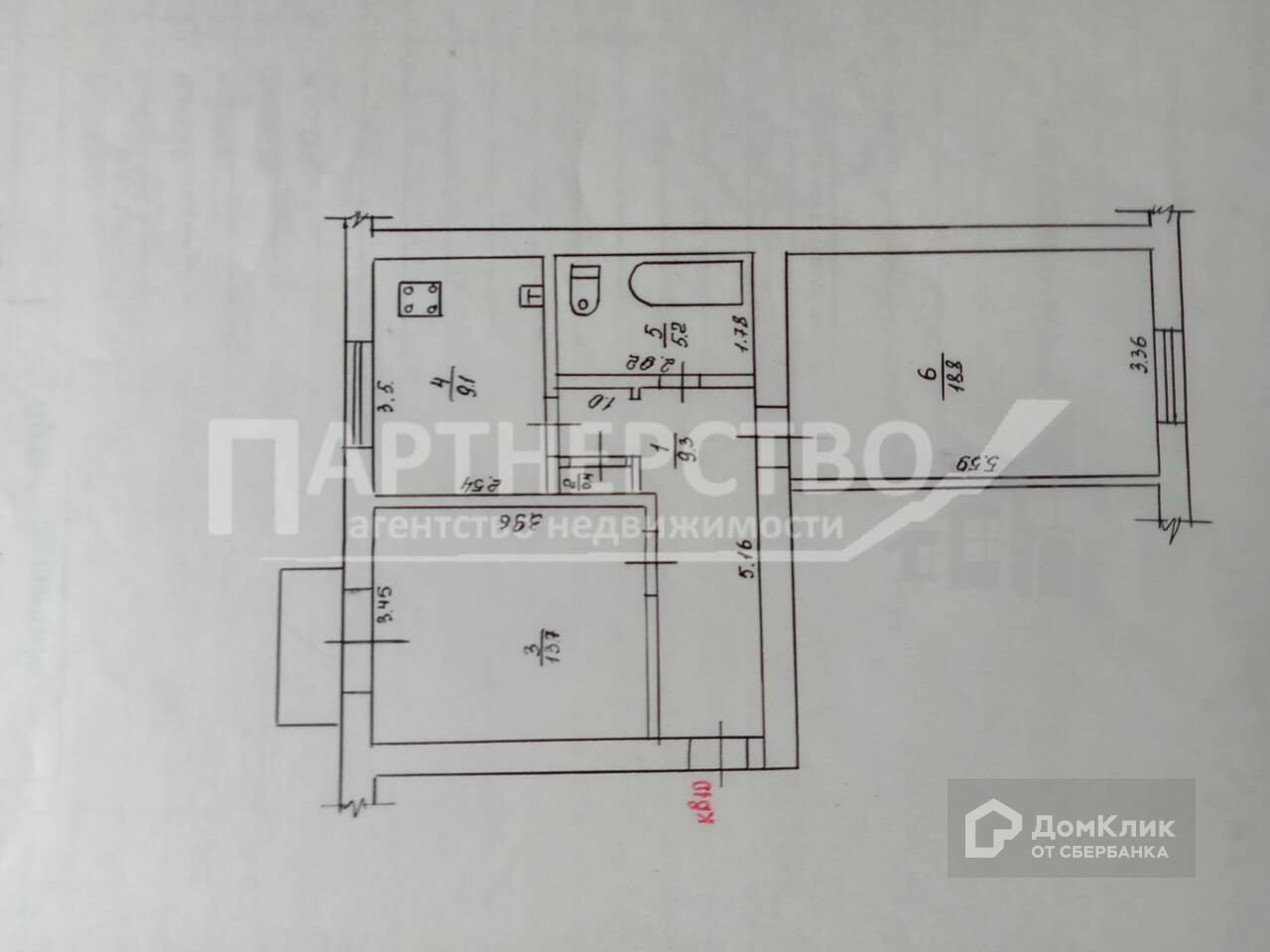 Общая площадь 56.5 м2