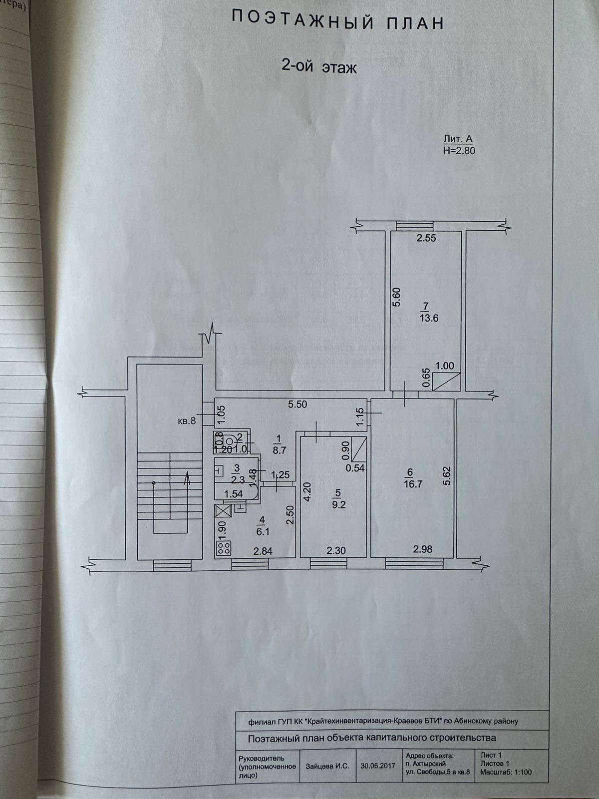 3-комнатная квартира, 57.2 м2, этаж 2 / 2, на продажу в поселке городского типа Ахтырский, улица Свободы, 5А