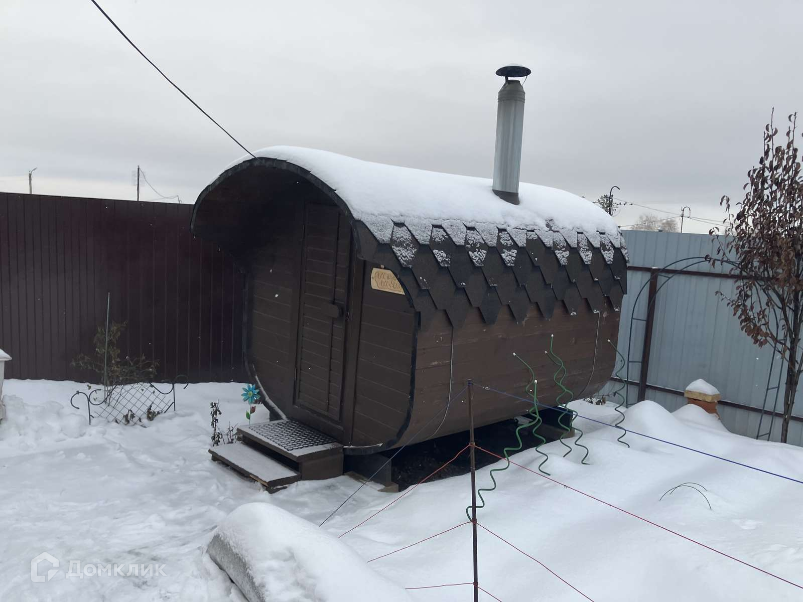 На участке место под 3 автомобиля,новая деревянная баня-бочка. посажены цветы,гр.орех,клубника и тд.