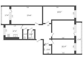 Общая площадь: 74.8 м2