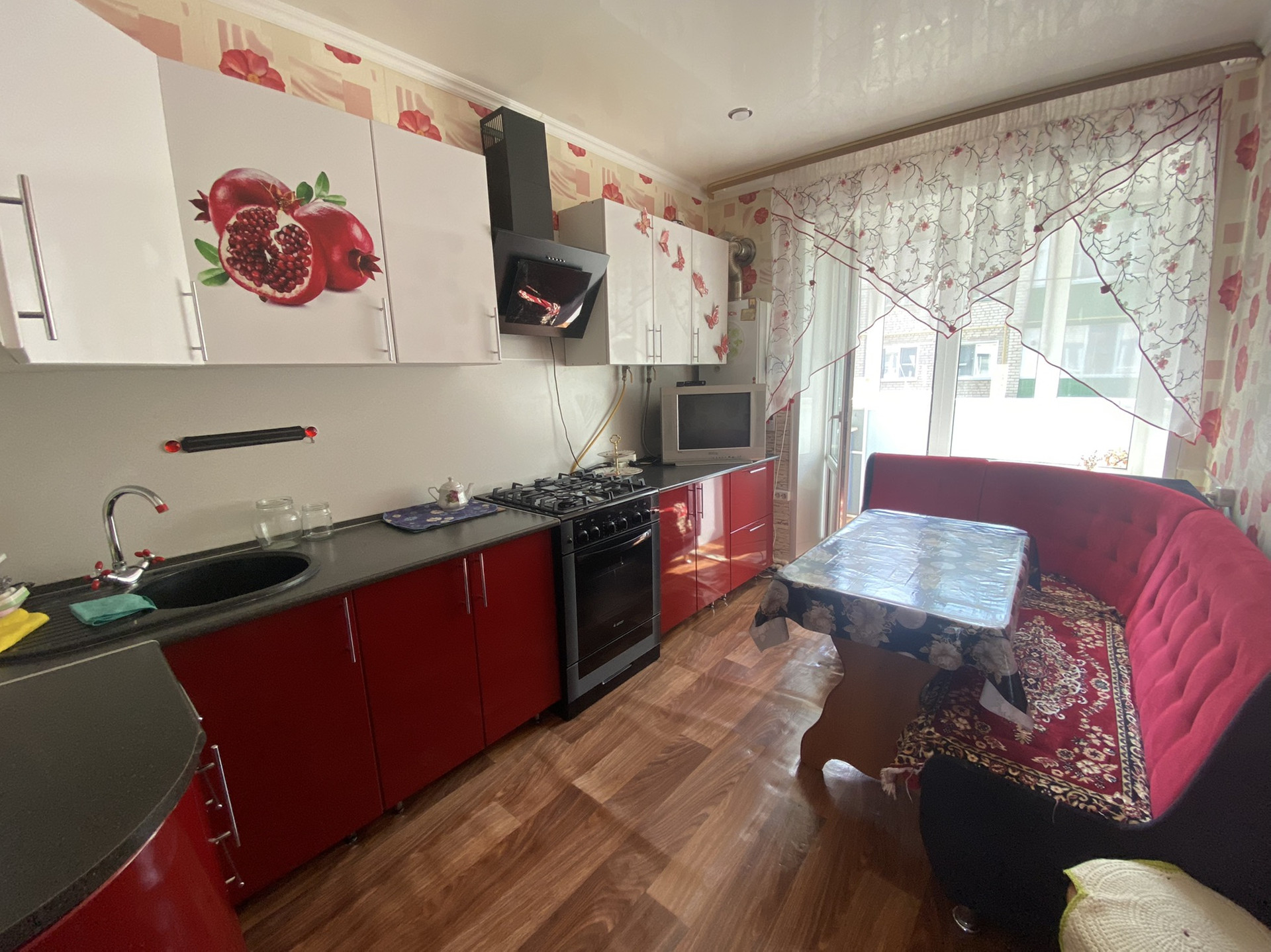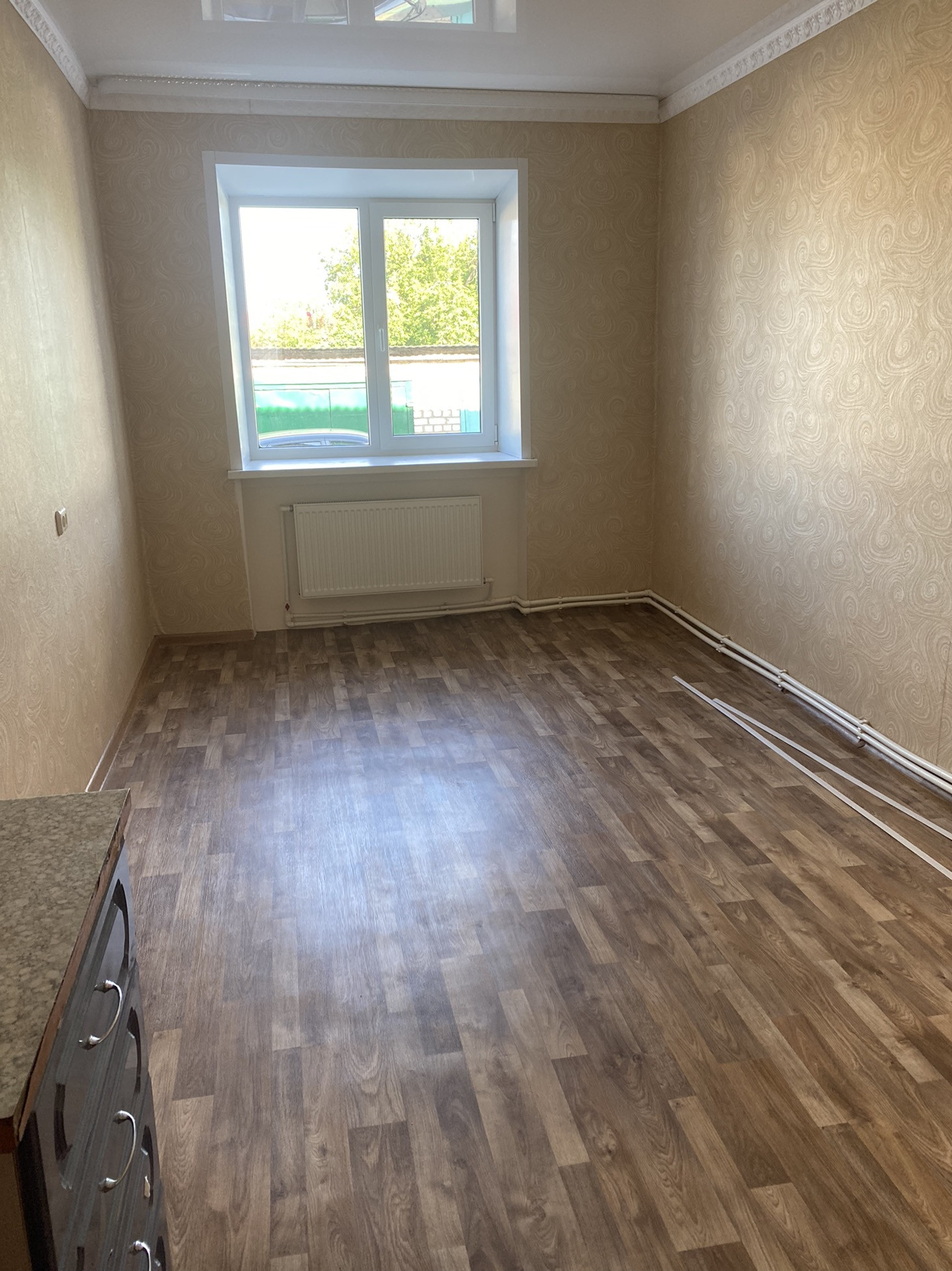 Рядом центр, школа,садик ,больница ,  всё в шаговой доступности, везде пластиковые окна , натяжные потолки . В 2021 был капитальный ремонт дома. В квартире остаётся целиком кухонный гарнитур , кухонный уголок .