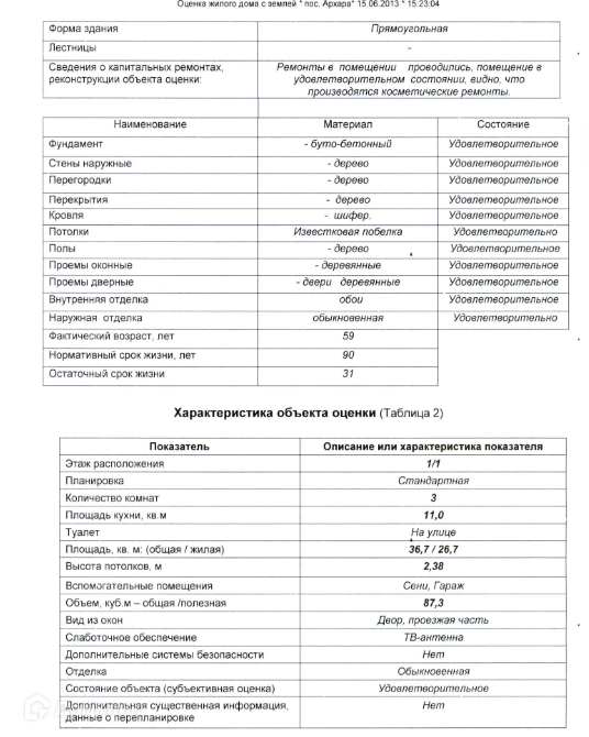 Объект (ID I4027107): жилой дом общей площадью 36.70 кв.м., расположенный на участке площадью 1,900.00 кв.м.  Материал стен - брус.