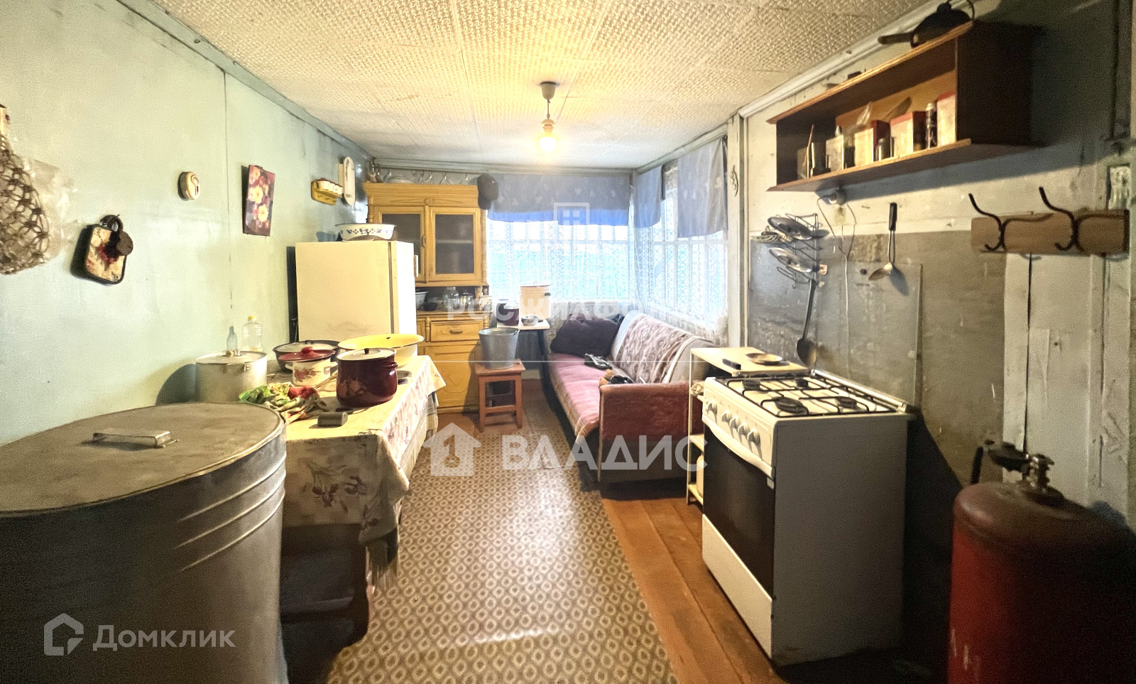 В доме веранда с кладовой, три комнаты, просторная кухня.