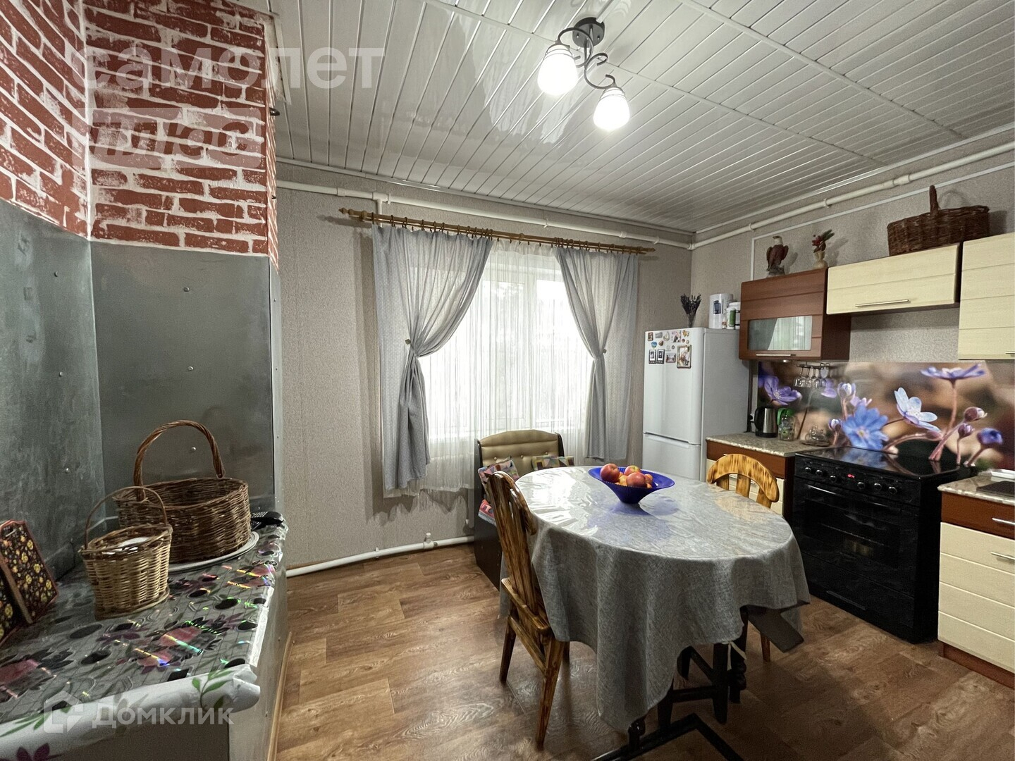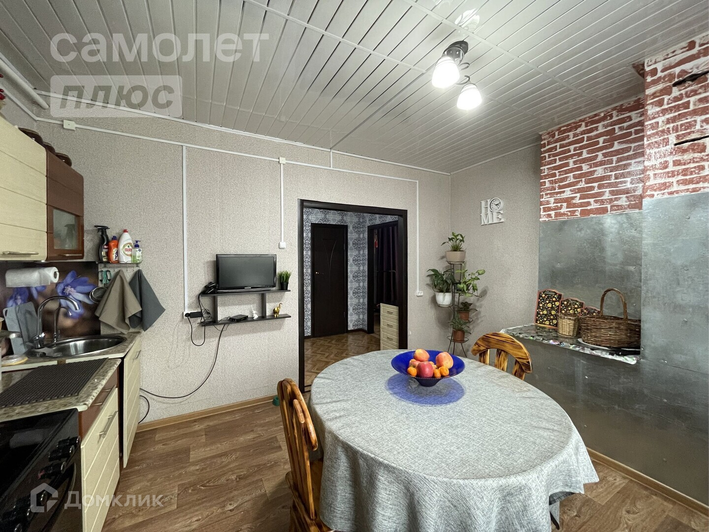 -Потолок частично натяжной, на кухне потолочные панели.