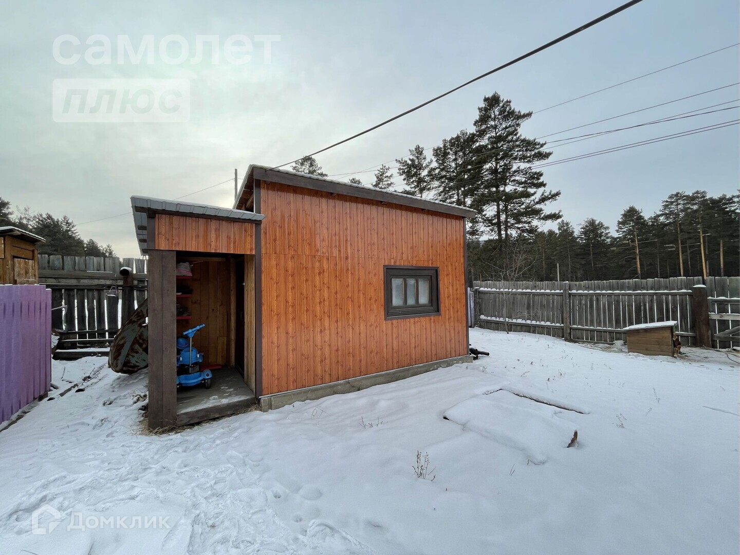 -Обшит качественным блок хаусом под брус.