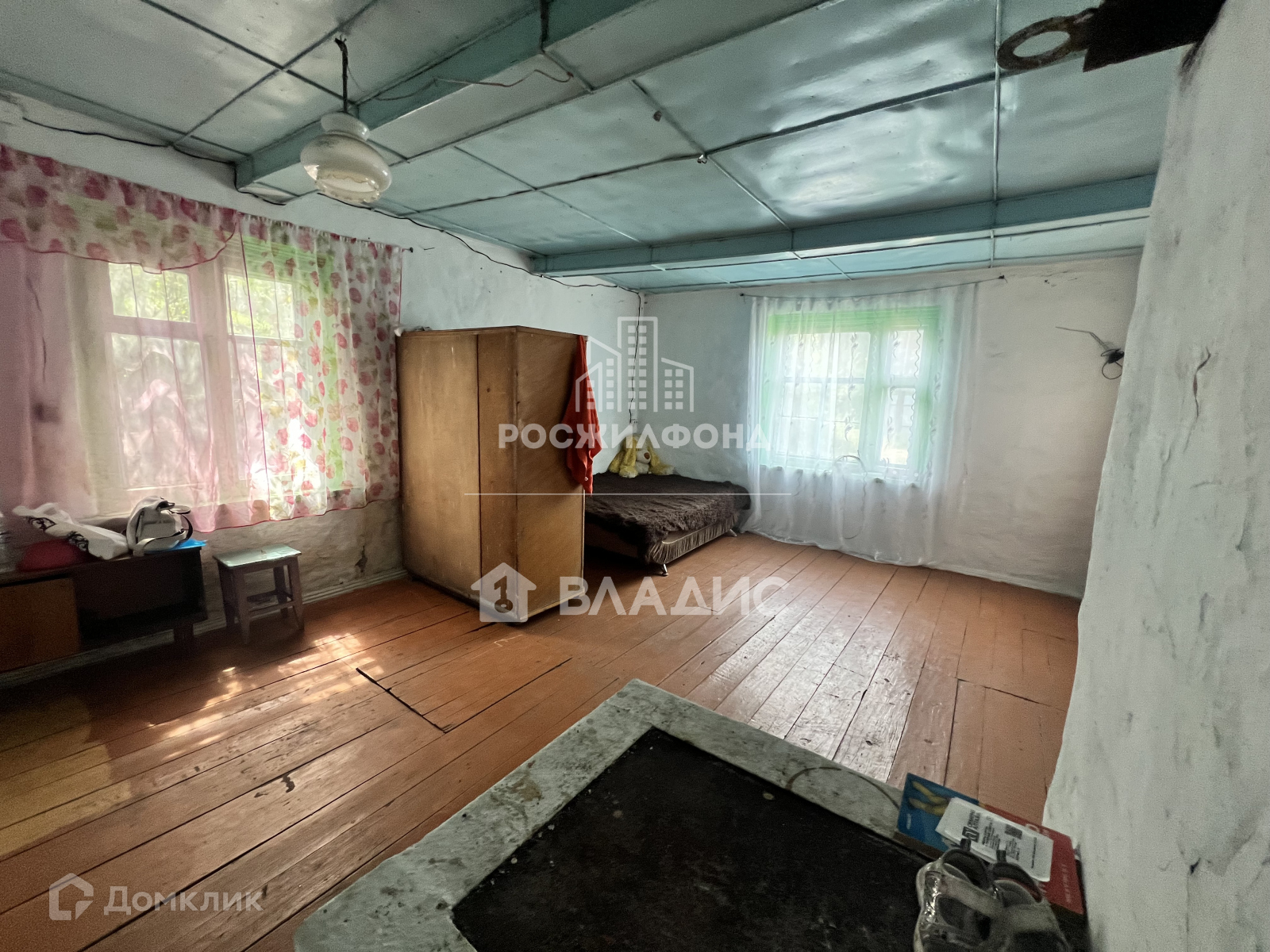 На первом этаже сени , большая комната, кладовая.